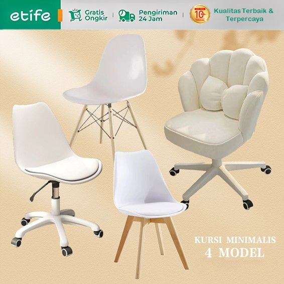 Kursi Putar-Putih , Kursi Putar-Hitam, Kursi Putar-Coklat, Kursi Putar-⚪ , Rias Putar-Putih, Rias Putar-Merah , Kursi Eames-Putih, Kursi Eames-Hitam, Kursi Bantal-Putih, Kursi Bantal-Hitam, Kursi Putar Sofa-⚪, Kursi Putar Sofa-Red
