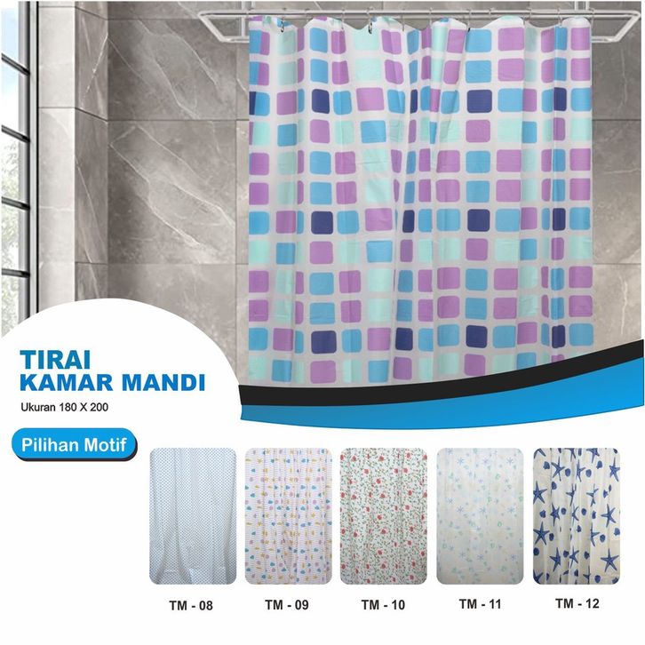 Tirai Kamar Mandi / Gorden Kamar Mandi / Shower Curtain Anti Air Berbagai Motif Ukuran 180x180