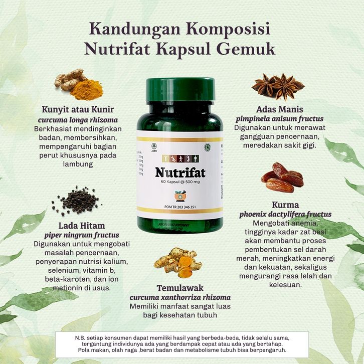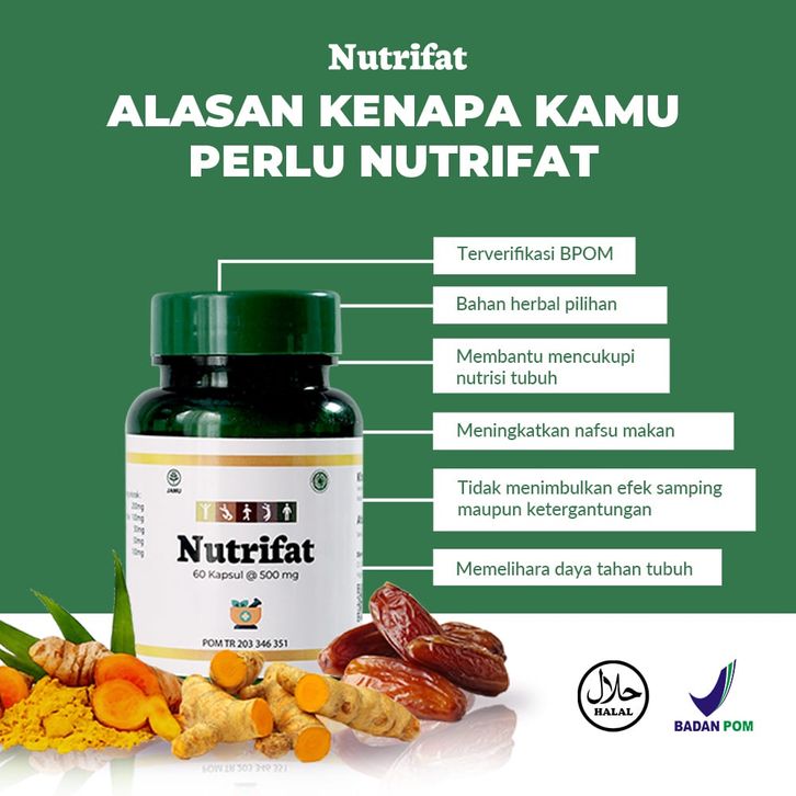 NUTRIFAT SUPLEMEN PENAMBAH BERAT BADAN OBAT PENGGEMUK ORIGINAL KAPSUL GEMUK TUBUH TAMBAH NAFSU MAKAN HERBAL