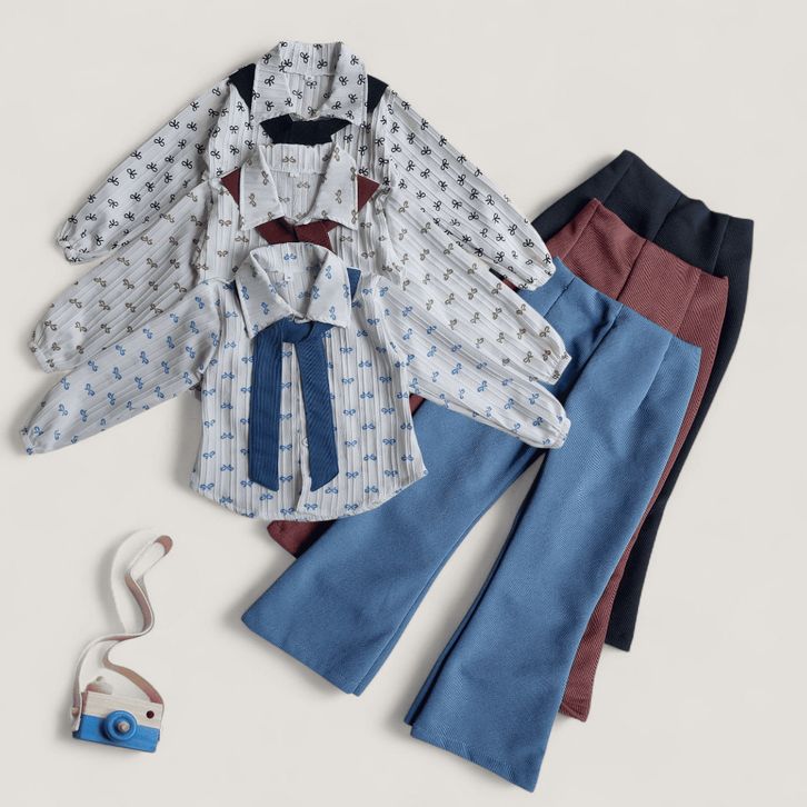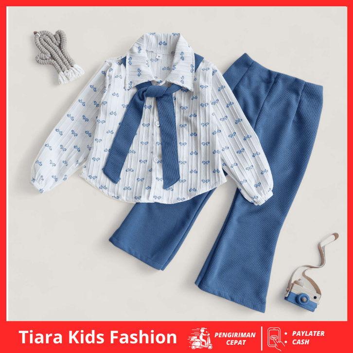 Setelan Anak Perempuan Model Korea Lorenza Motif Pita Celana Cutbray Setelan Baju Anak Perempuan Kekinian 2-10 Tahun