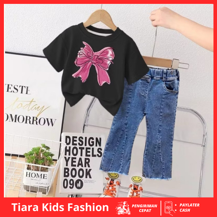 Setelan Baju Anak Perempuan Kekinian Celana Denim Panjang Setelan Anak Cewek Terbaru Model Korea 1-5 Tahun