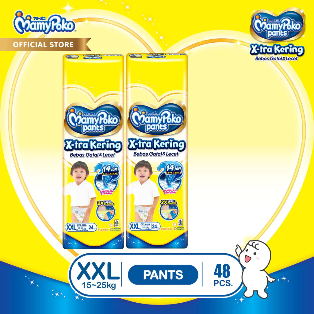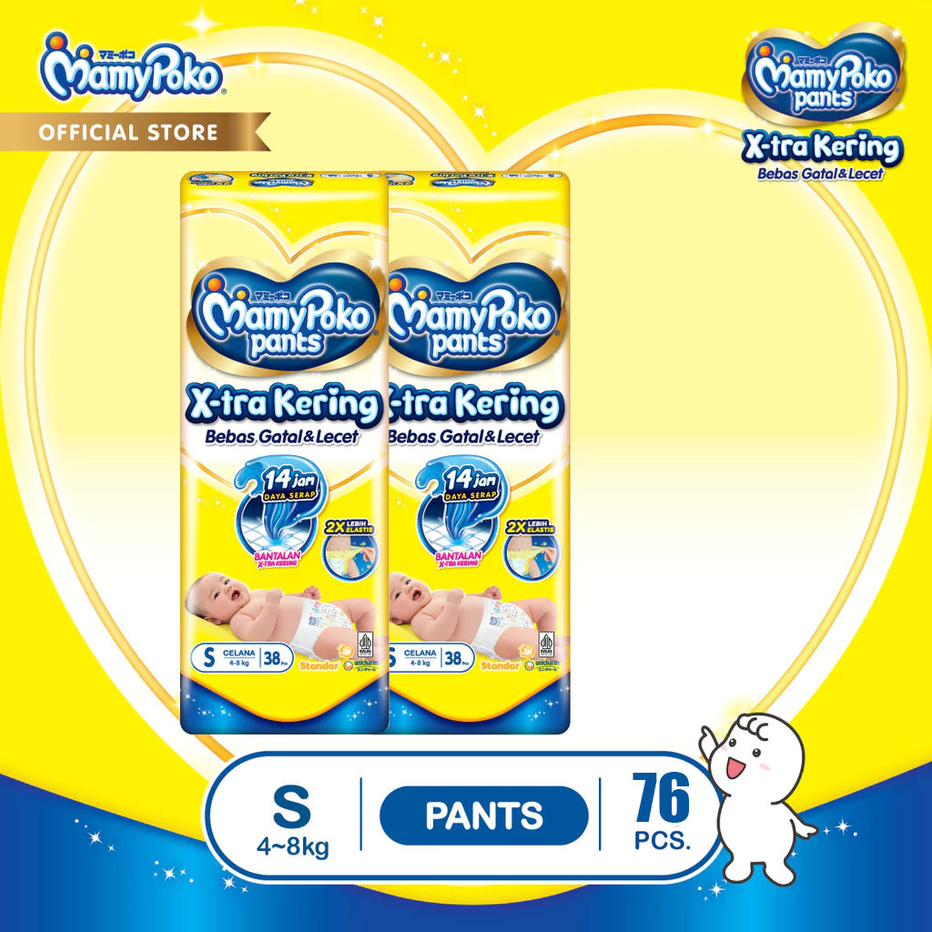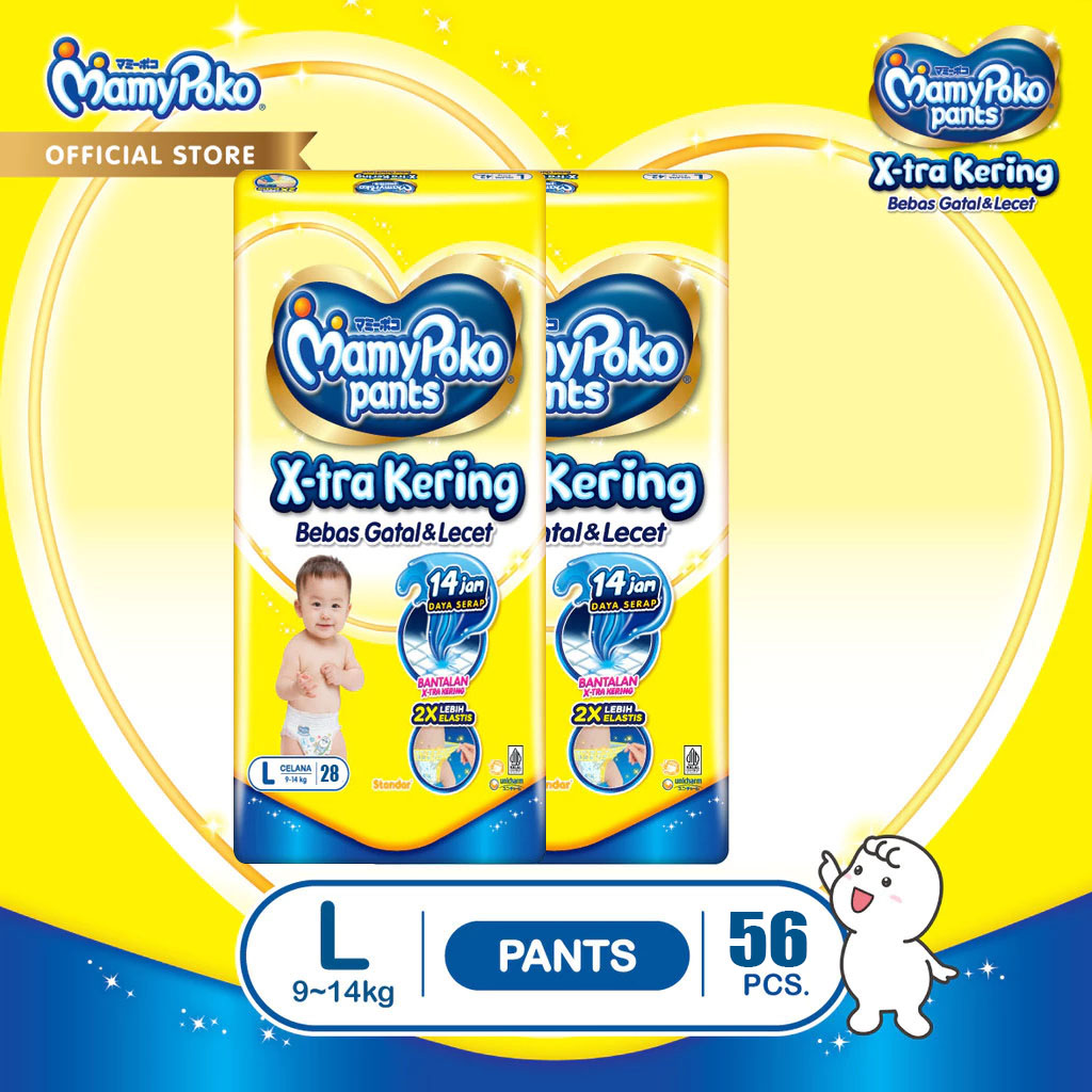 PAKET 2 PACKS MAMYPOKO Pants Xtra Kering NB S44 S38 M32 L28 XL26 XXL24 POPOK BAYI ANTI BOCOR POPOK SEKALI PAKAI