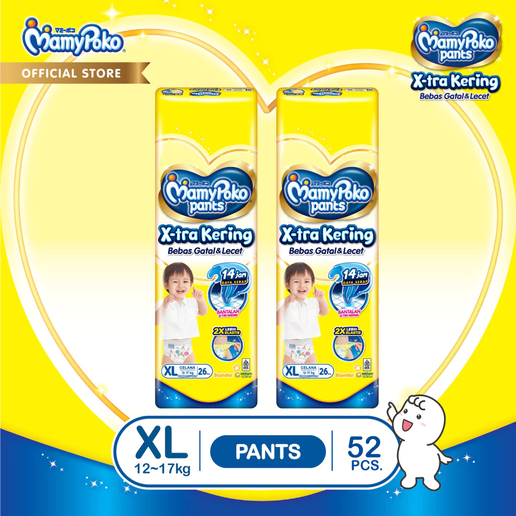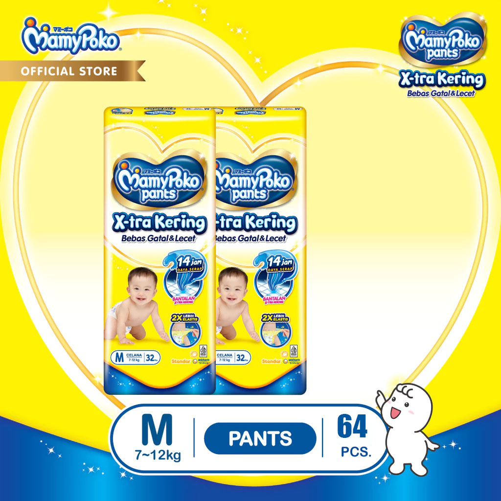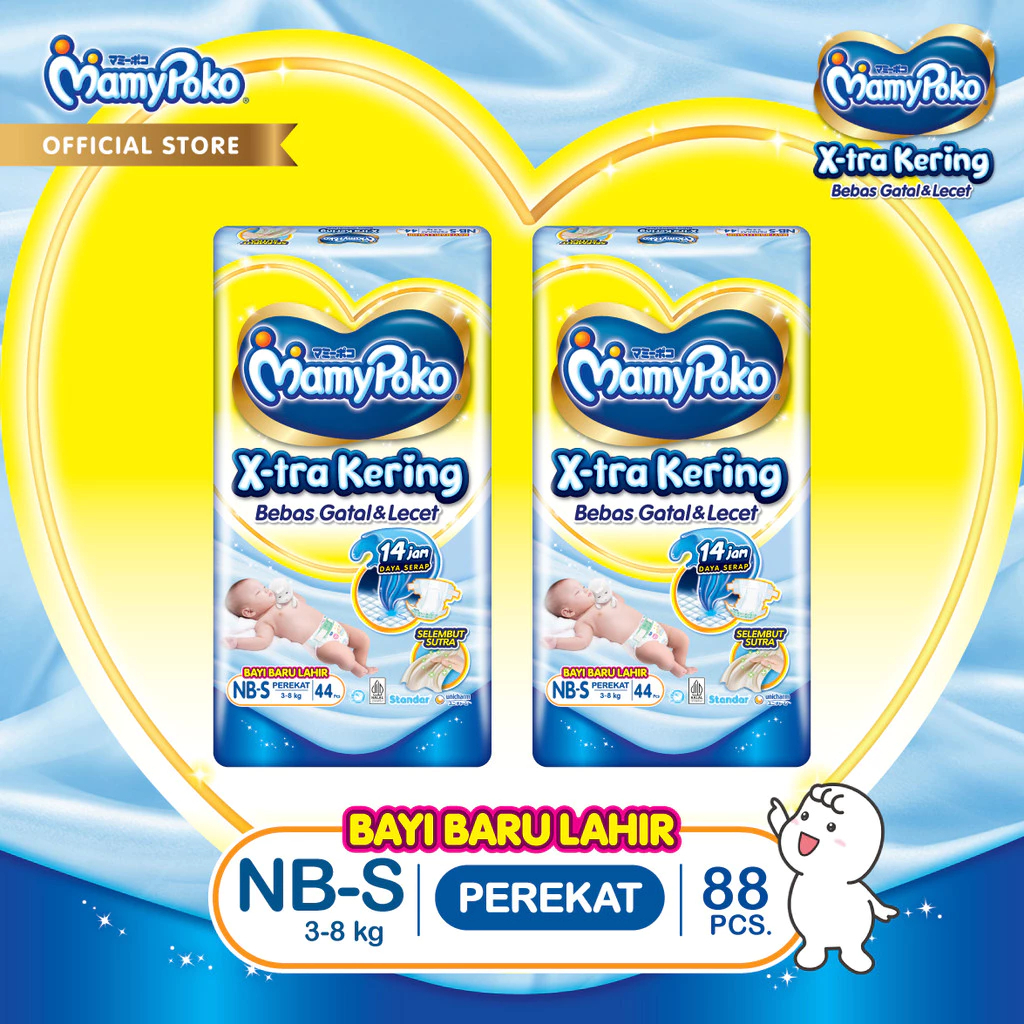 PAKET 2 PACKS MAMYPOKO Pants Xtra Kering NB S44 S38 M32 L28 XL26 XXL24 POPOK BAYI ANTI BOCOR POPOK SEKALI PAKAI