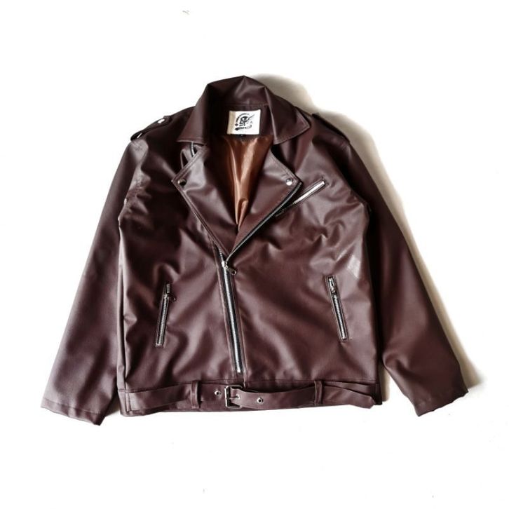 GALFINC JAKET KULIT COLLAR BIKER SEMI LEATHER BROWN COKLAT Terlaris