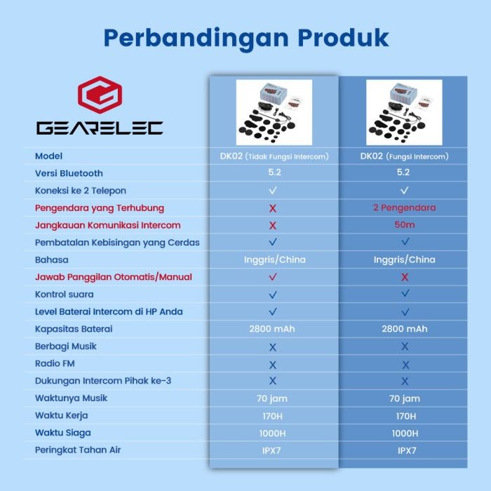 DK02 Sepeda Motor Helm Bluetooth Tahan Air intercom Headset 50-200m -