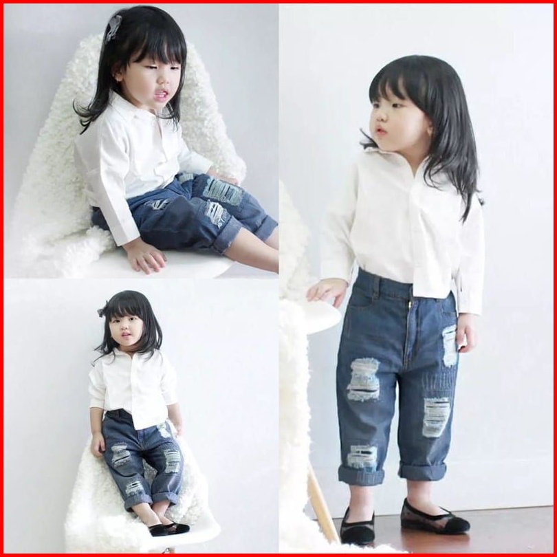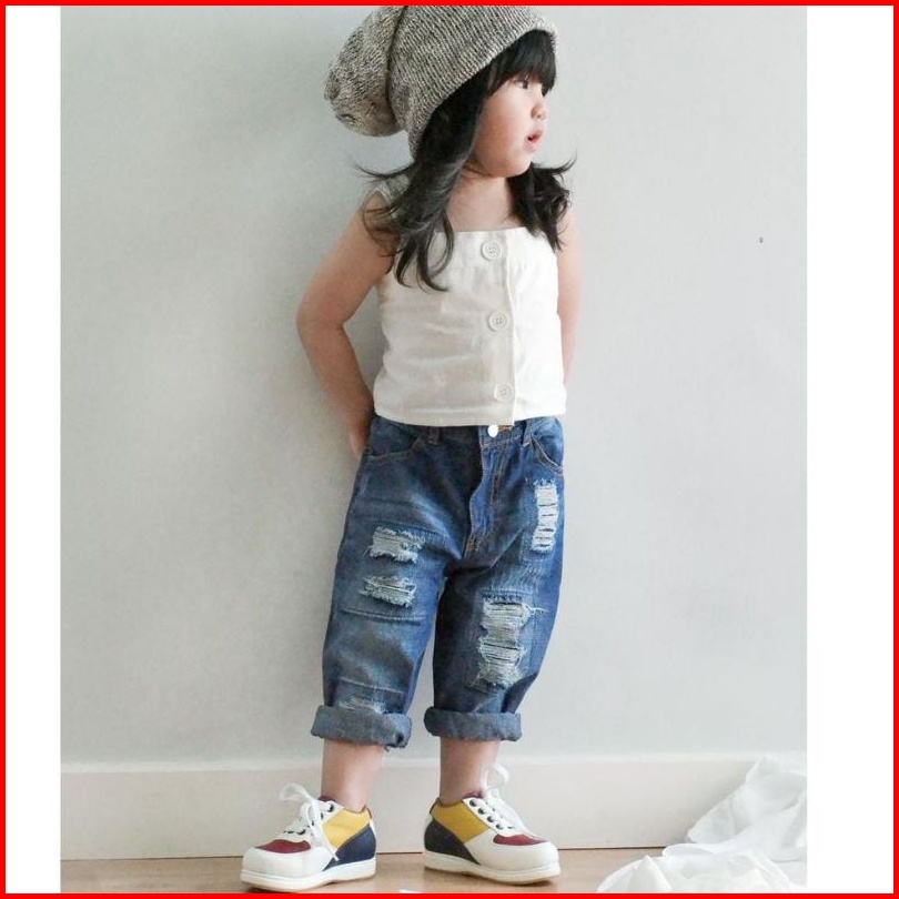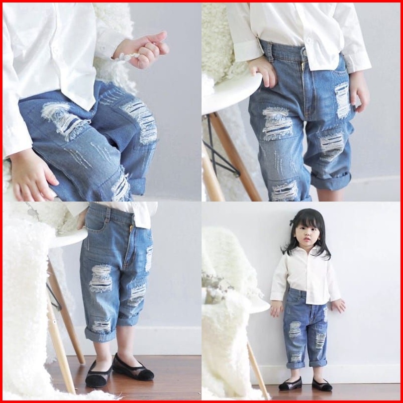 Celana Anak Sobek Ash Ripped Jeans Drak Blue 1-7 Tahun