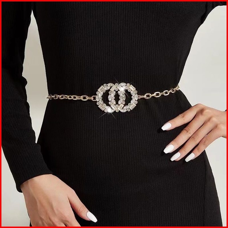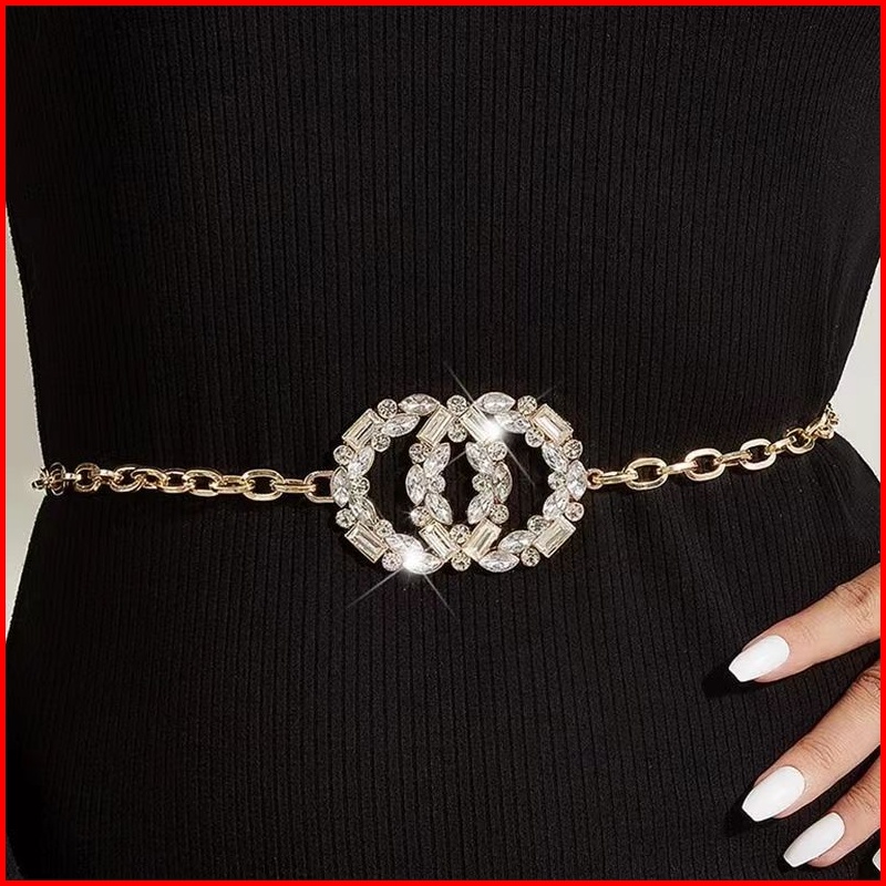 Bgs-283 Belt Rantai Wanita Ikat Pinggang Wanita Logam Slim Model Kristal Imitasi Fashion Wanita Fashion Womens Perempuan