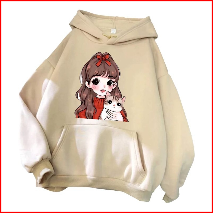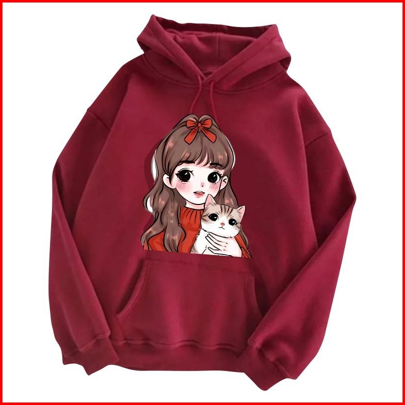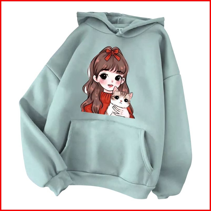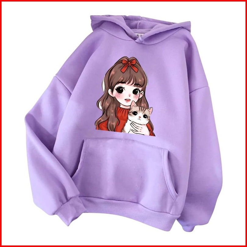 Hoodie Anak Perempuan Girls Meow 5-15thn Sweater Anak Perempuan Terbaik