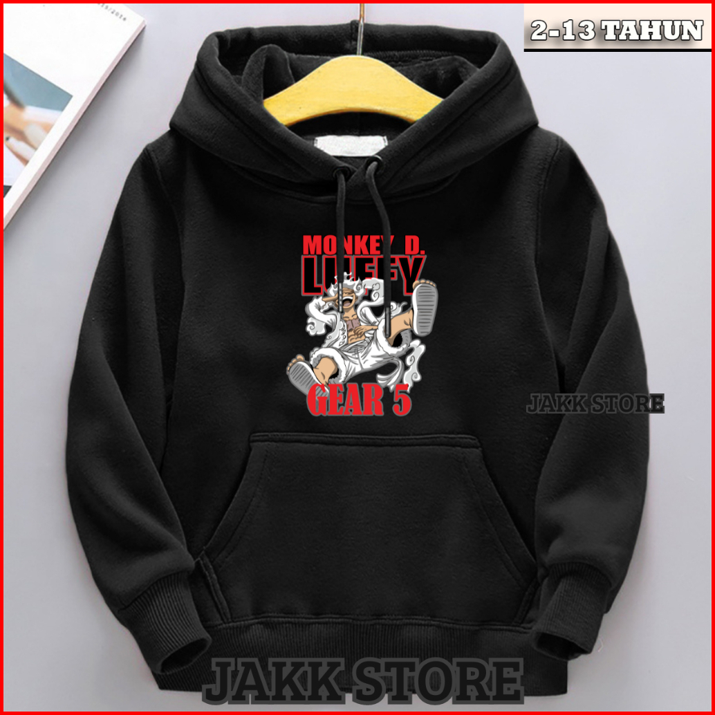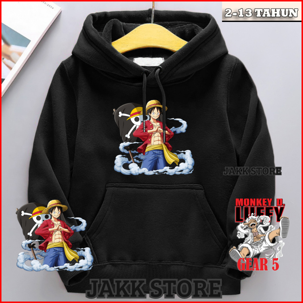 Jaket Hoodie Anak Laki Laki Usia 2 3 4 5 6 7 8 9 10 11 12 13 Tahun Anime Luffy One Piece Gear5