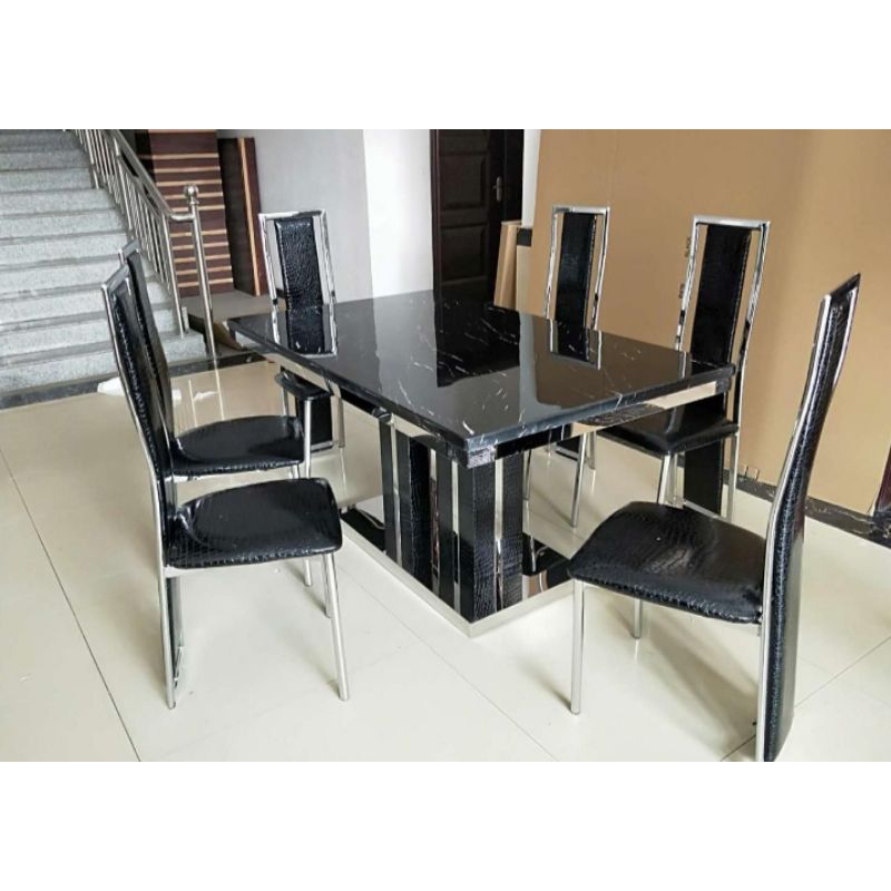 MEJA MAKAN MARMER 6 KURSI MINIMALIS STAINLESS STEEL PUTIH/HITAM MEWAH IMPORT ITALY