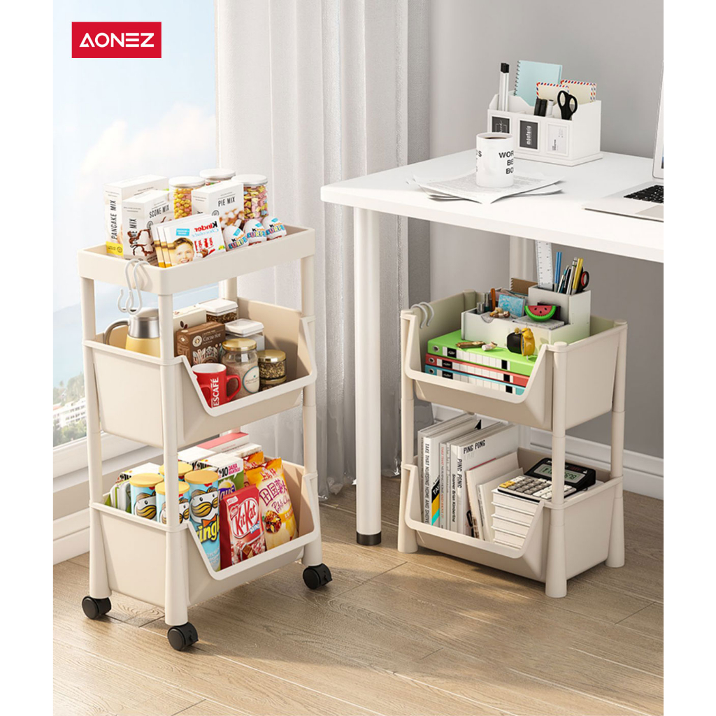 AONEZ SUSUN SERBAGUNA TEMPAT RAK BUKU ANAK LEMARI BUKU PLASTIK RAK PORTABLE RODA RAK MAINAN RAK RODA TOY STORAGE