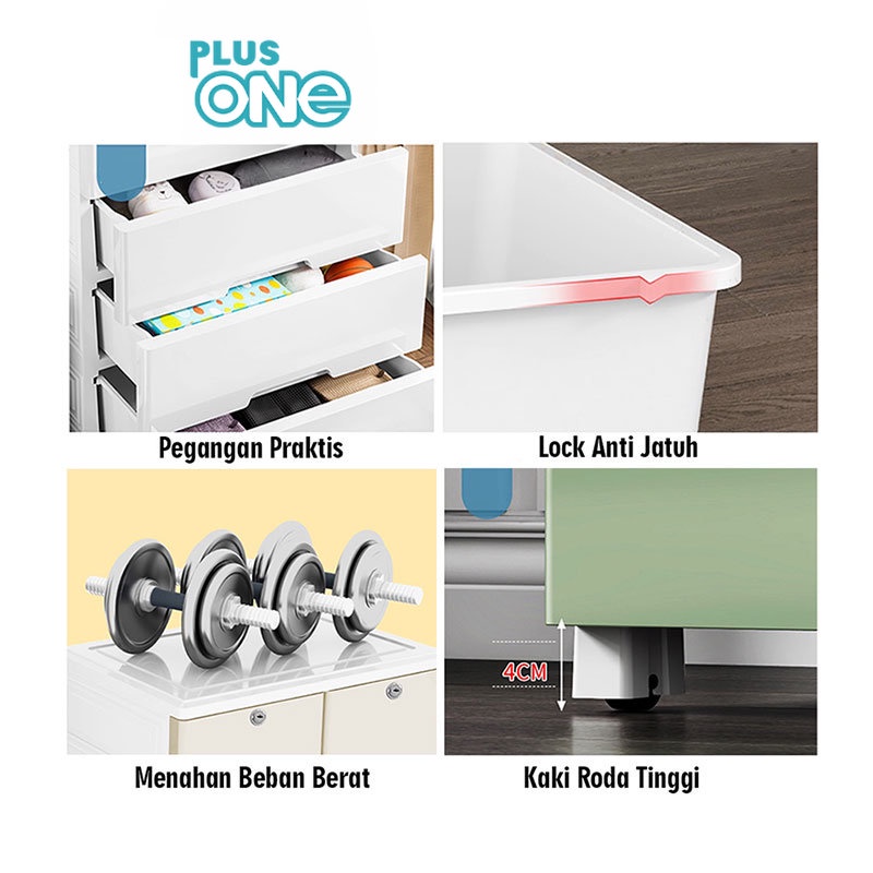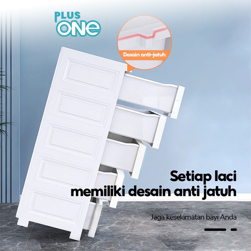 PLUS ONE LEMARI PLASTIK PAKAIAN DEWASA ANAK JUMBO LACI SUSUN - MINIMALIS SAFETY LOCK SERBAGUNA 3 4 5 6 7 SUSUN TINGKAT