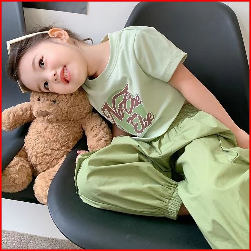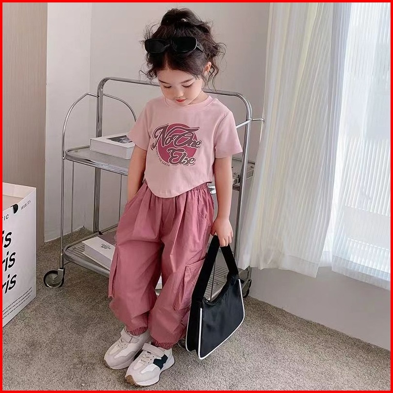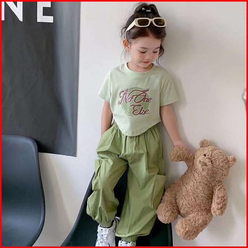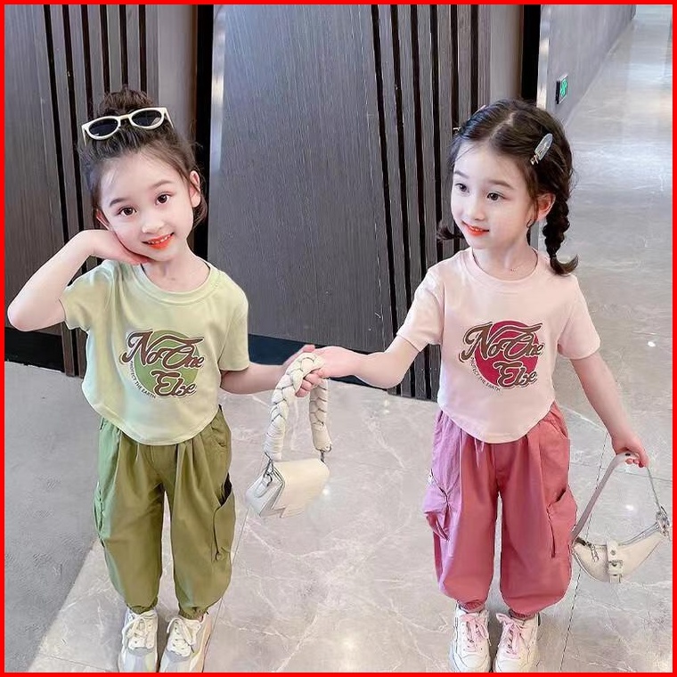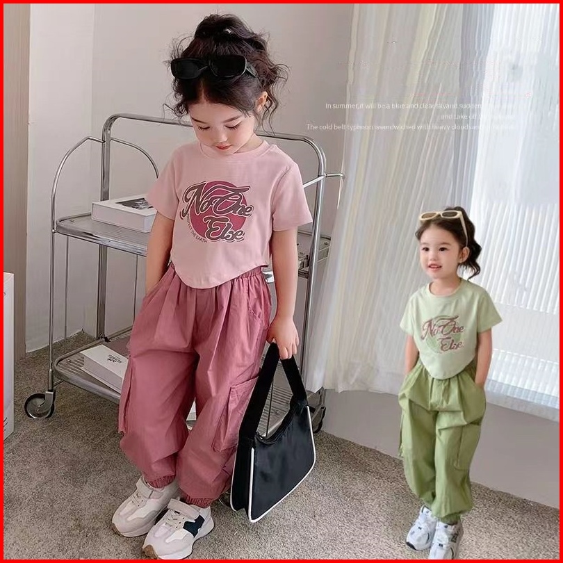 One Set Cargo T-shirt Celana Panjang 2 Warna Anak Permpuan Set Anak Cewek Setelan Anak Perempuan Baju Anak Style Baru Cl