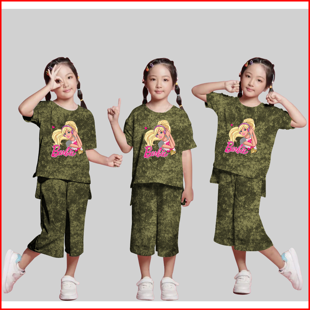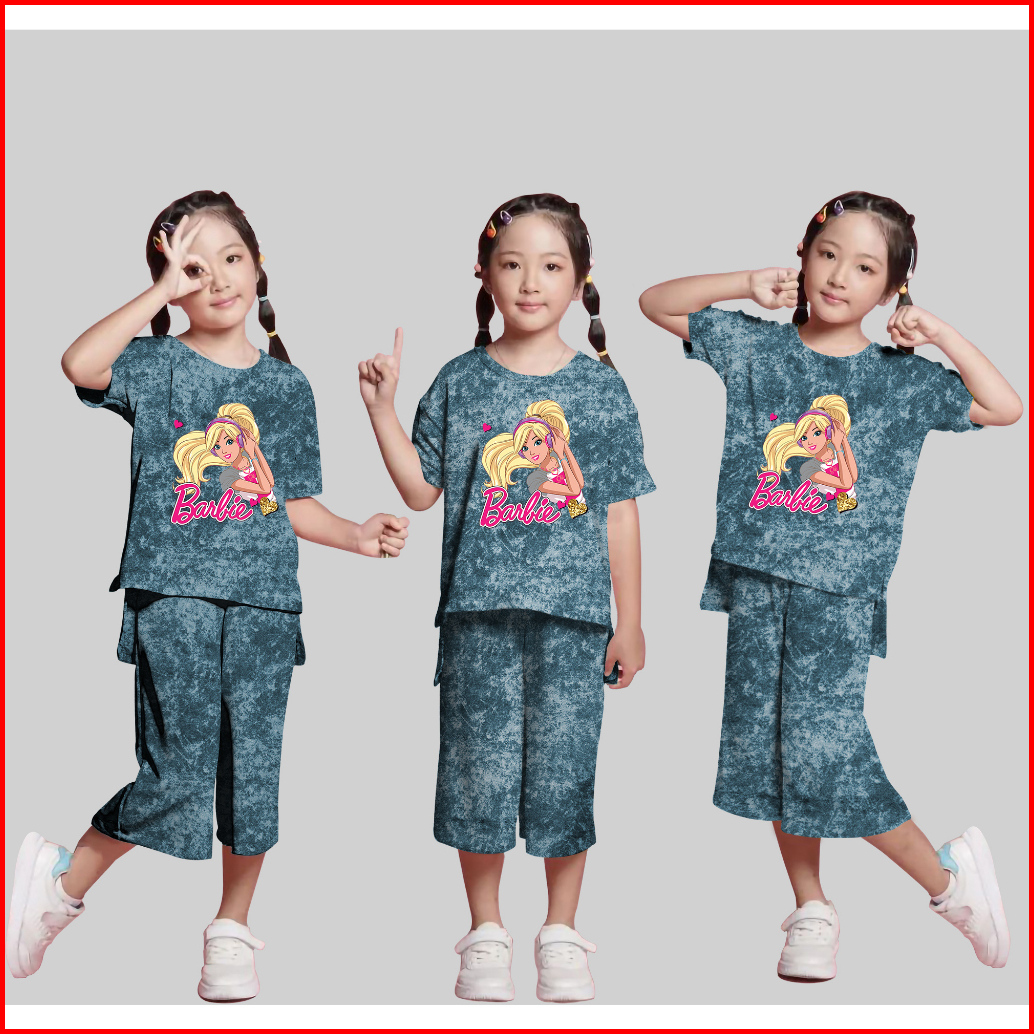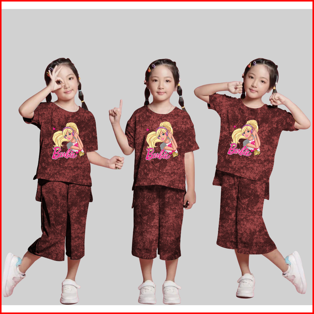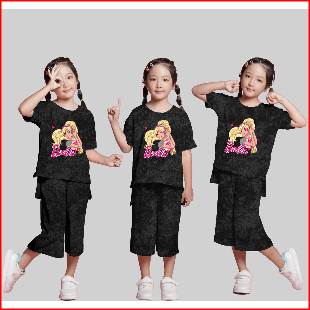 Setelan Anak Perempuan Barbie Music Usia 5-13 Tahun Setelan Kulot Anak