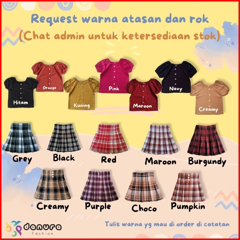 Set. Navy, Set. Navy pink new, Set.hitam putih, Set. Marun, Random, Set. Orange blue, Set. Choco orange, Set. Pink grey, Set. Pink PW, Request warna, Set. Yellow white, Set merah new, Set. Black honey, Set red white