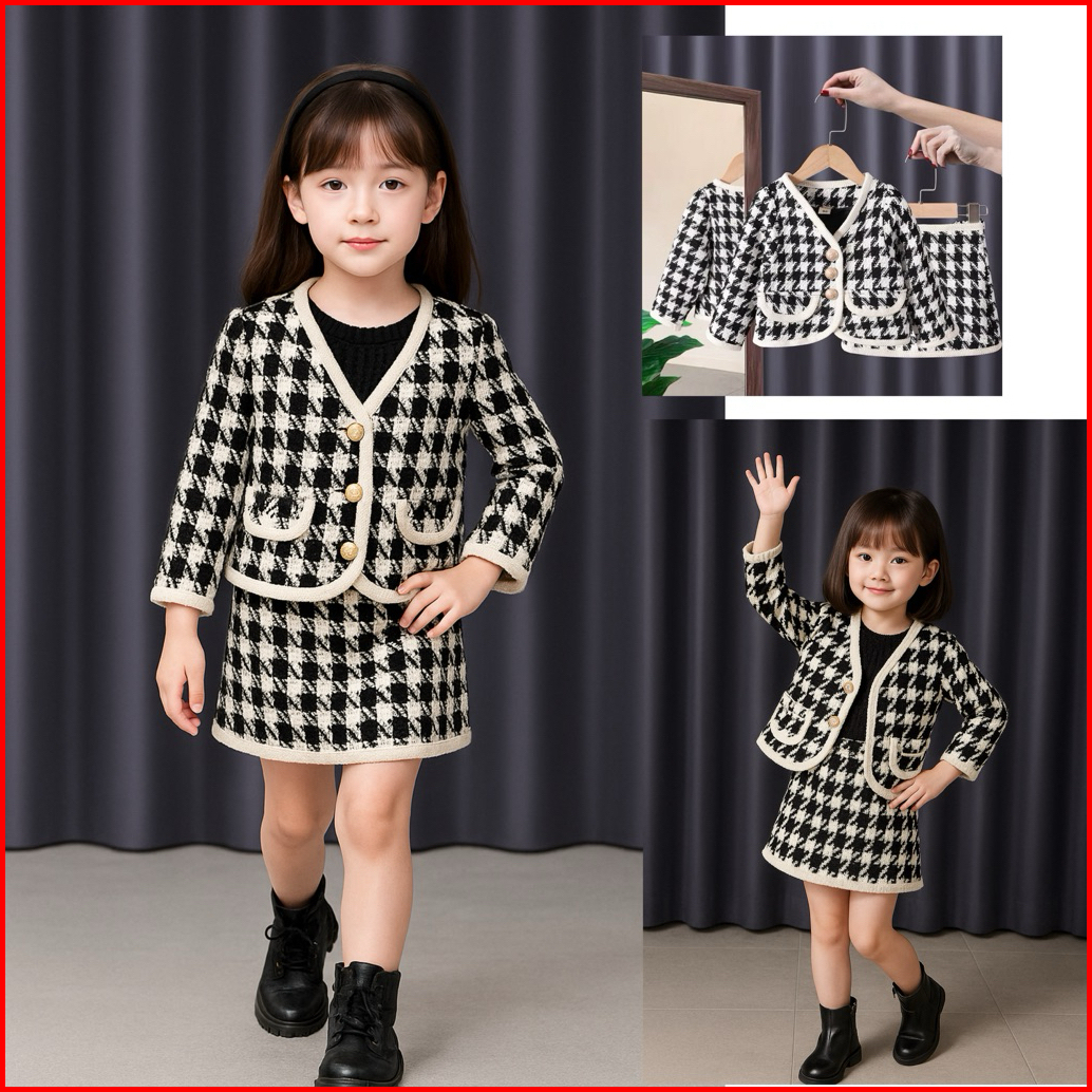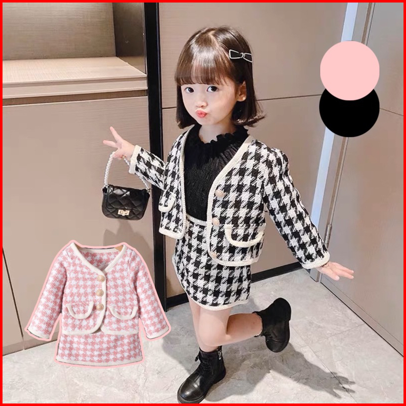 1-8tahun Setelan Blazer Rok Elegant Anak Perempuan Ootd Pesta Baju Kondangan Anak Cewek Hitam Pink