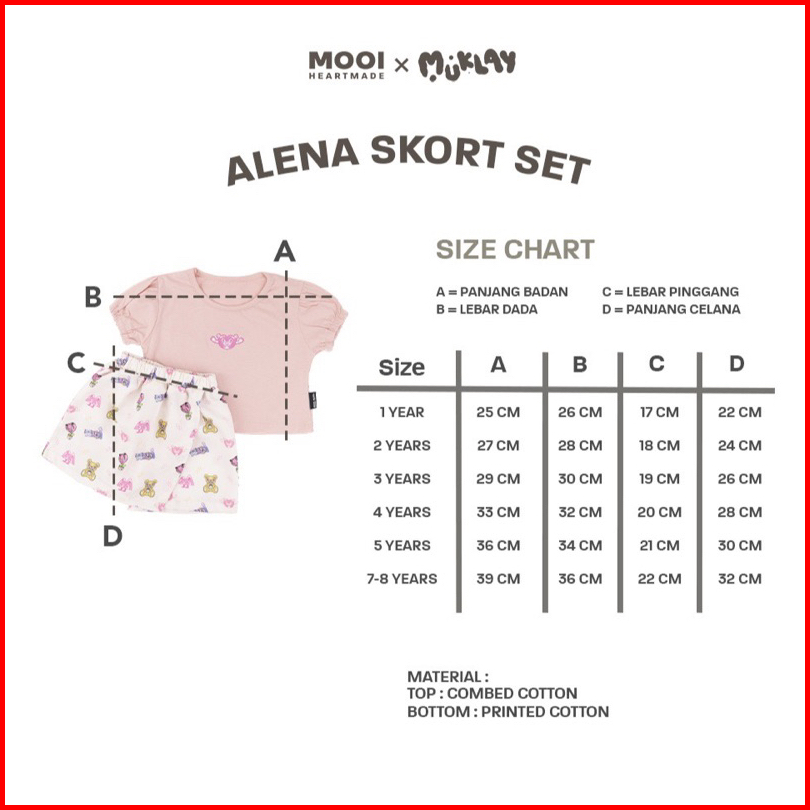 Mooi Alena X Muklay Alena Skort Setelan Anak Perempuan