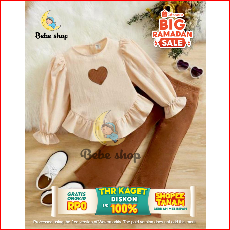 Setelan Anak Perempuan Bahan Cringkle Motif Love Celana Cutbray Usia 1 Sampai 10 Tahun Baju Anak Kekinian Viral 12 12 Bi