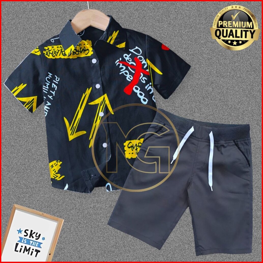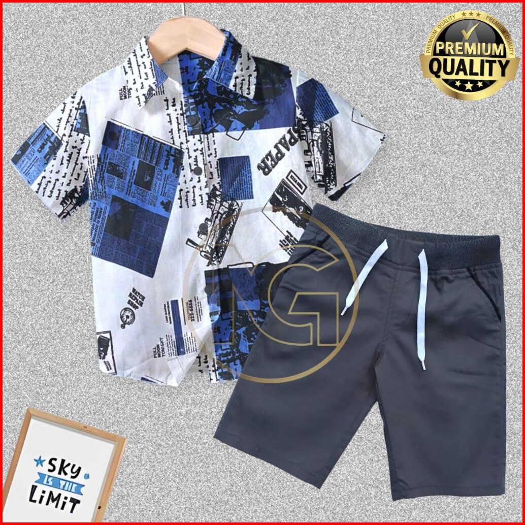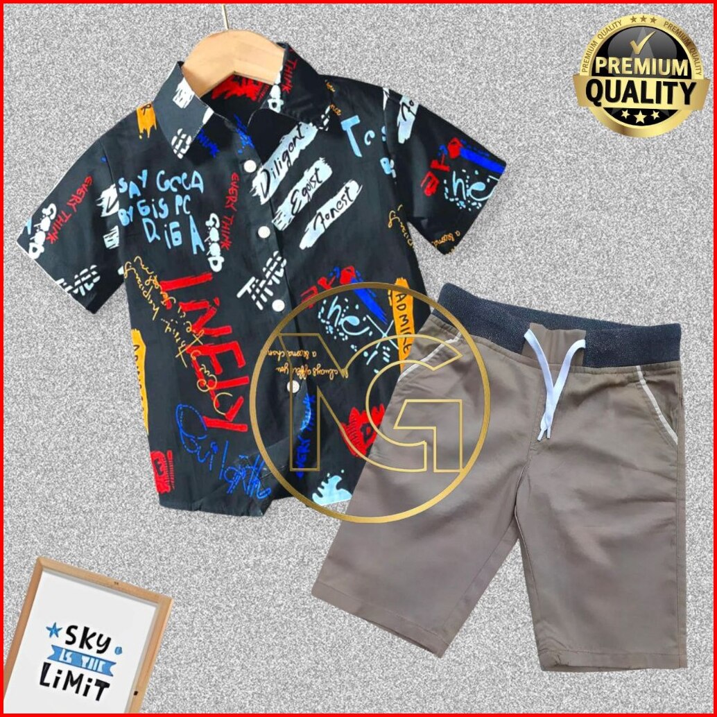 Setelan Anak Laki Laki Kemeja Pendek Motif Umur 1-10 Tahun Stelan Anak Cowok Tanggung