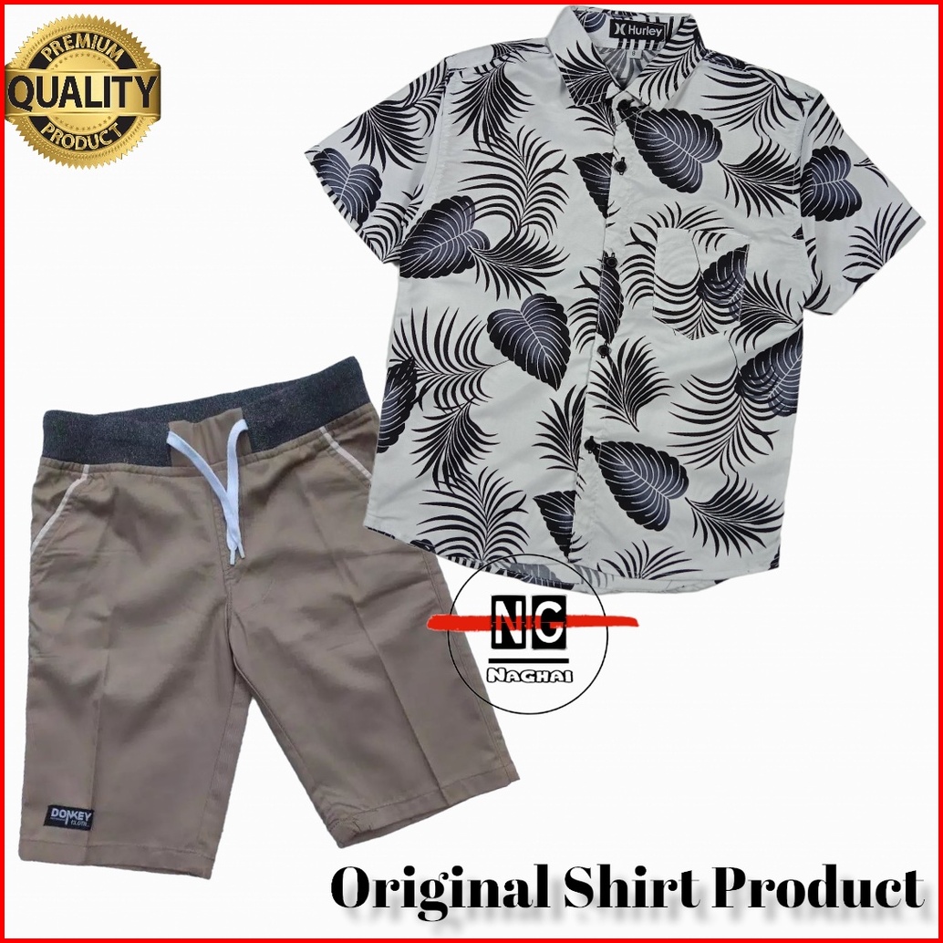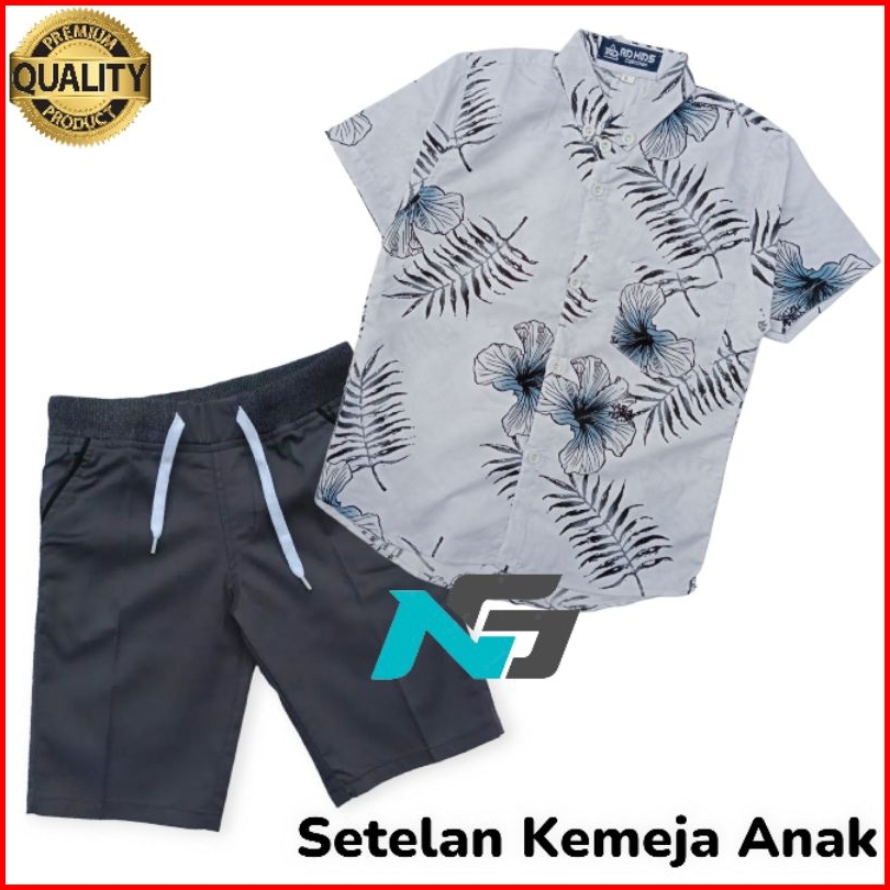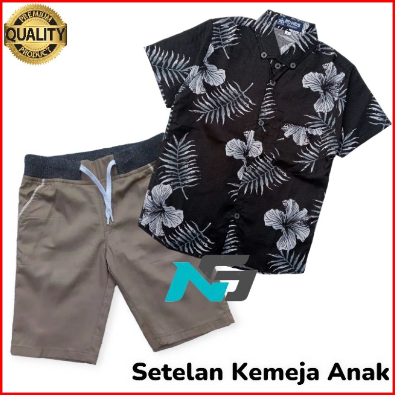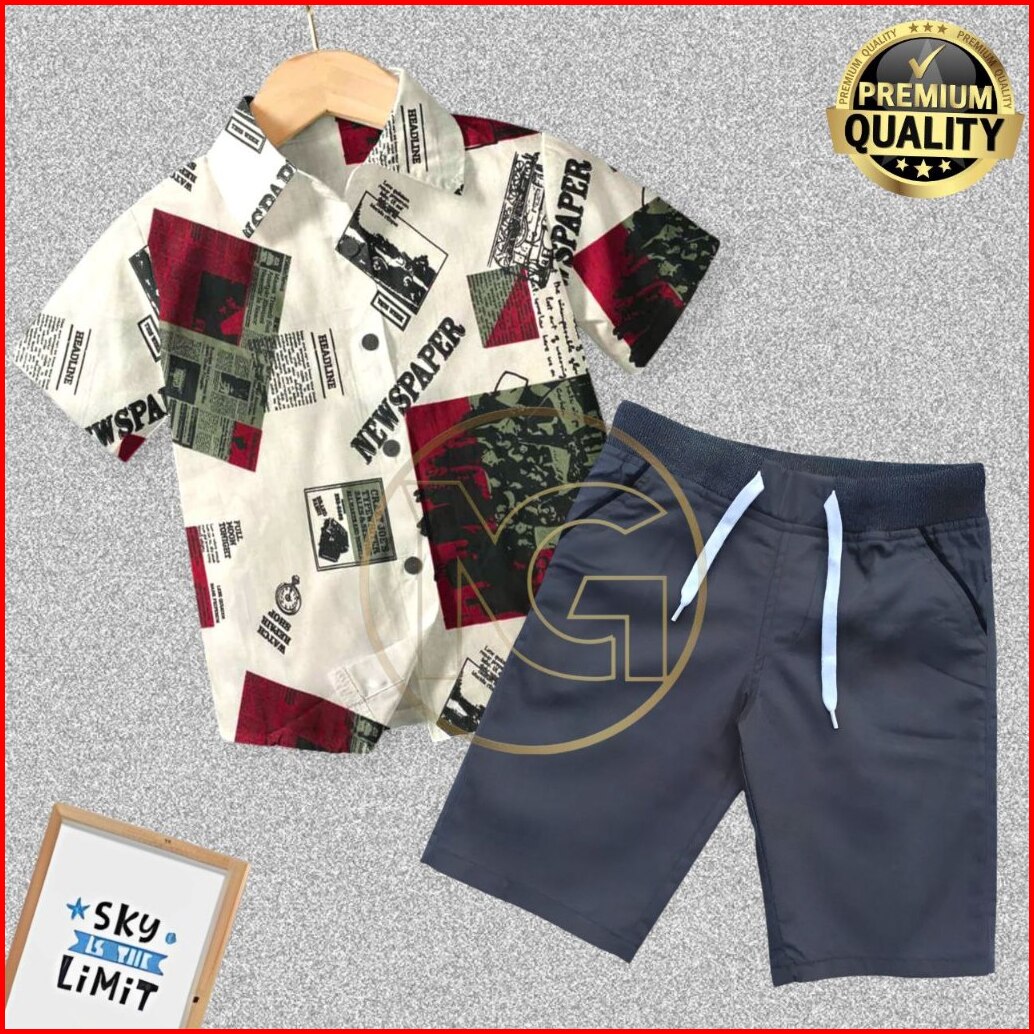Setelan Anak Laki Laki Kemeja Pendek Motif Umur 1-10 Tahun Stelan Anak Cowok Tanggung