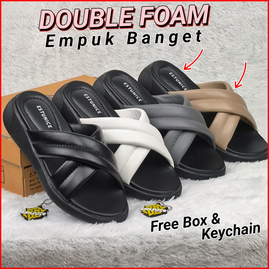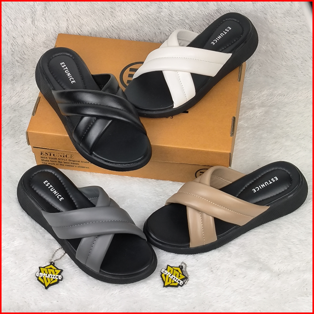 Estunice Sandal Slop Wanita Sendal Selop Wedges Terbaru Kekinian - Xavia