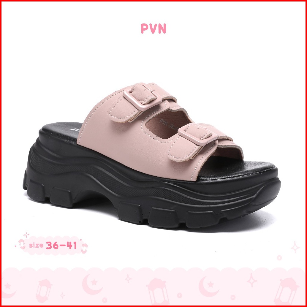 Pvn Aran Sandal Tali Wanita Hitam Pink 217