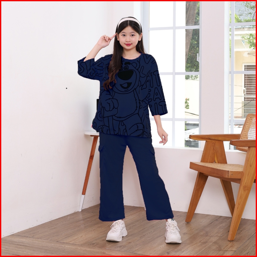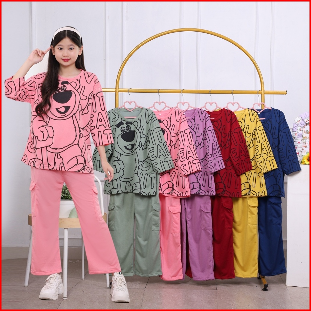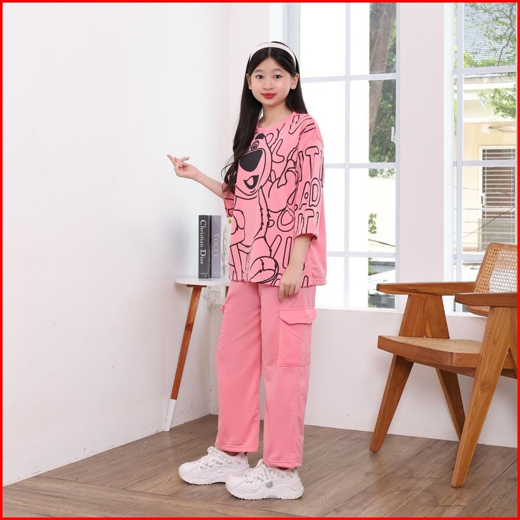 Setelan Cargo Anak Perempuan Usia 4-12 Tahun Motif Karakter
