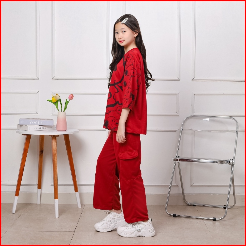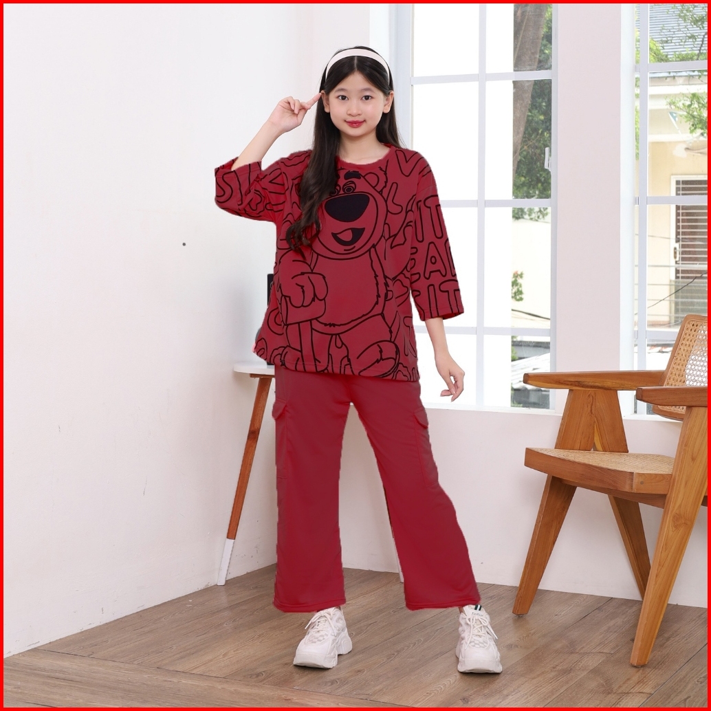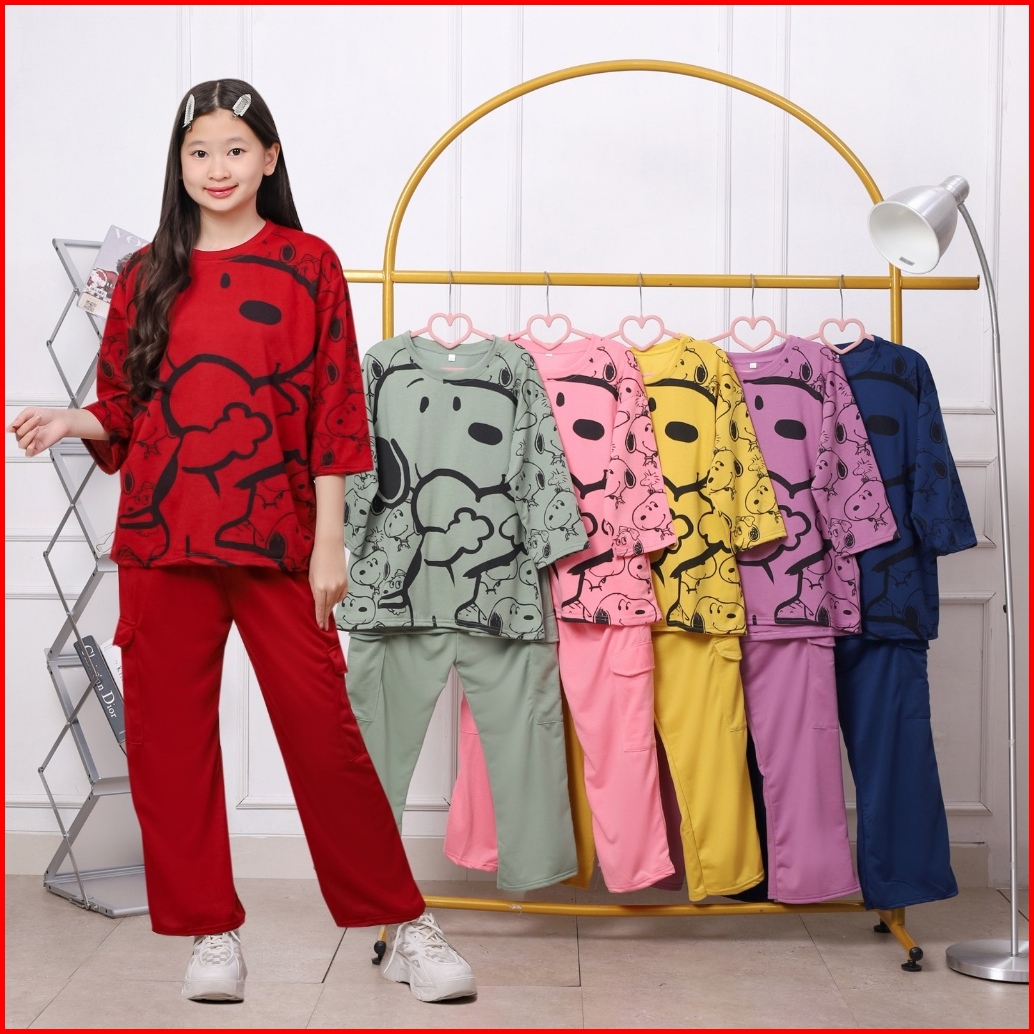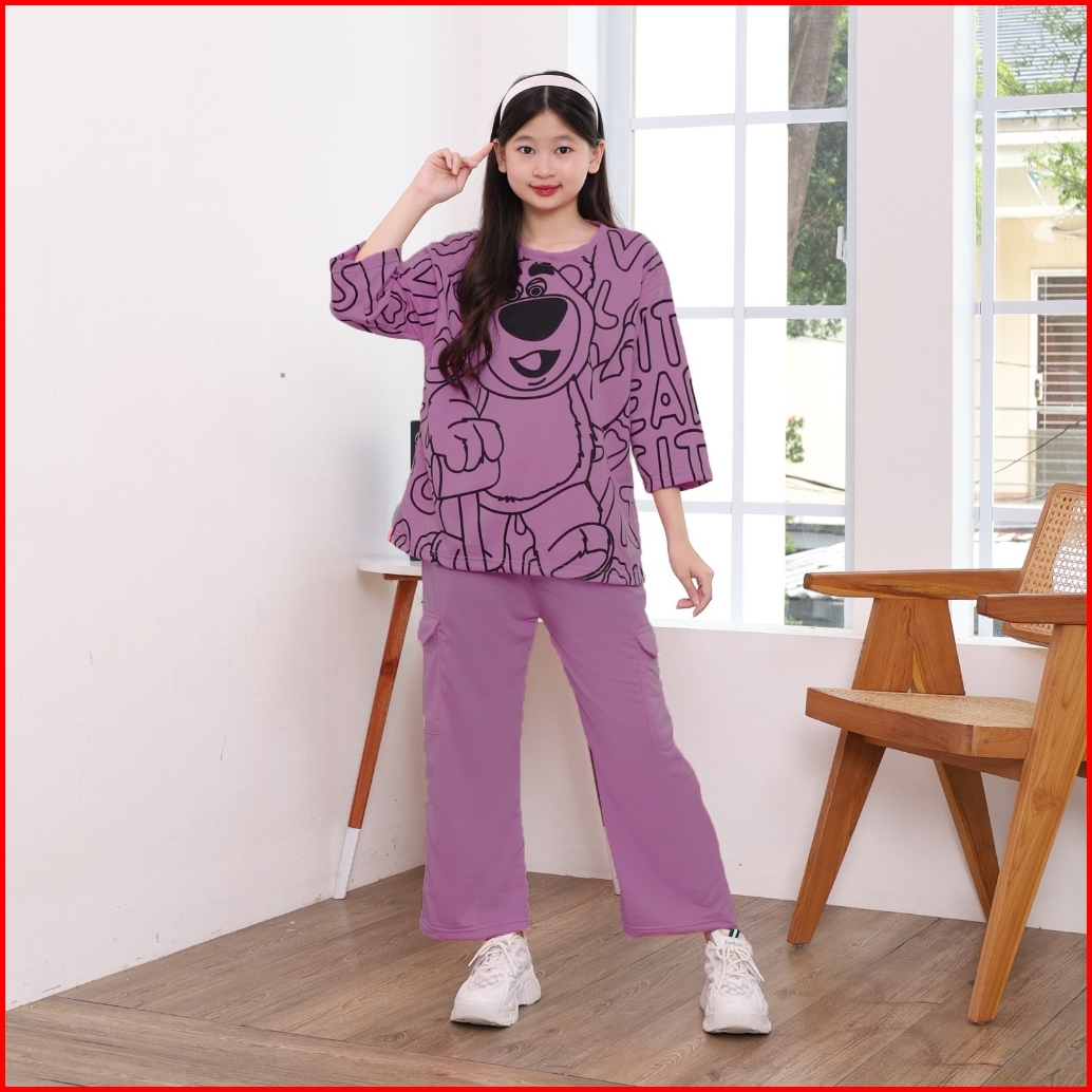 Setelan Cargo Anak Perempuan Usia 4-12 Tahun Motif Karakter