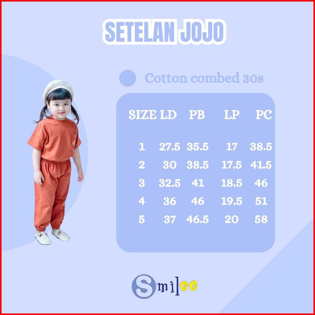 Setelan Anak Unisex Smilee Jojo Mix Warna Size 1-5tahun