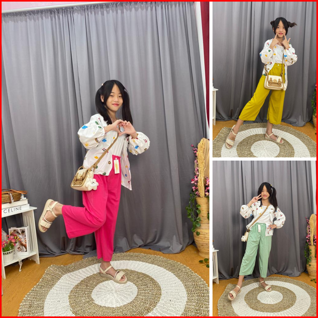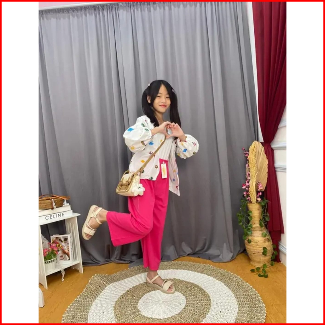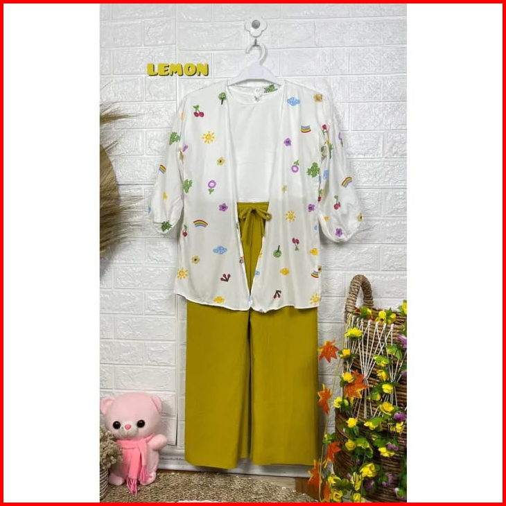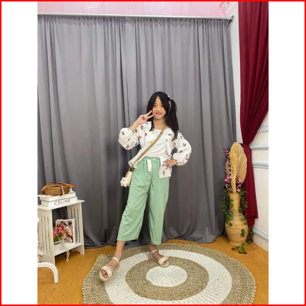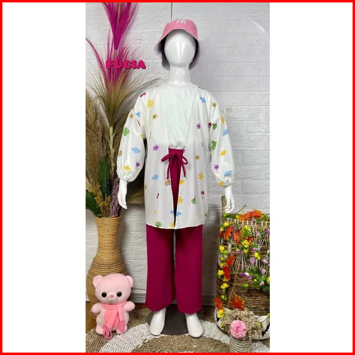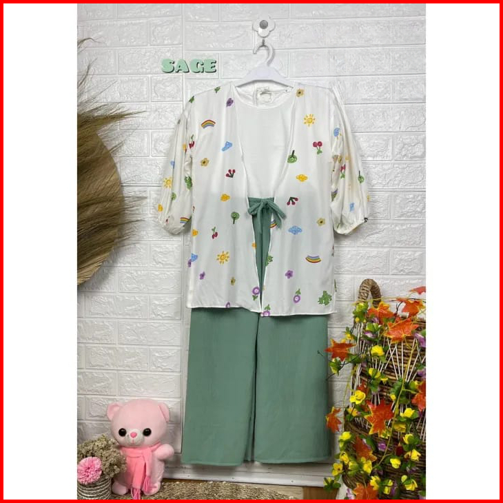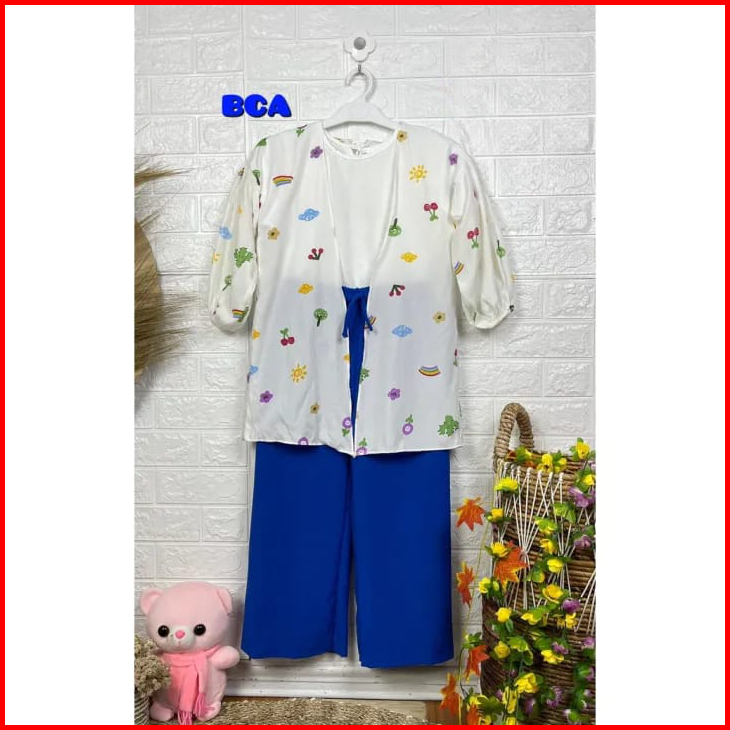 Best Seller Setelan Crinkle 3 In 1 Kiyowo Lengan Balon Setcel Kiyowo Airflow Premium One Set Cardigan Anak Perempuan 3-1