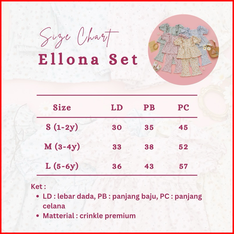 Wongtuku.id Ellona Set Baju Anak Perempuan Set Anak Perempuan