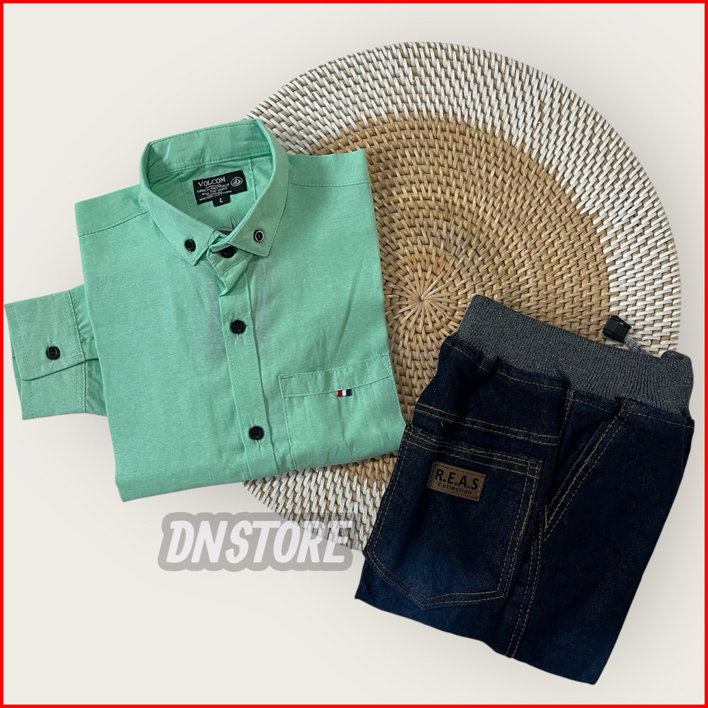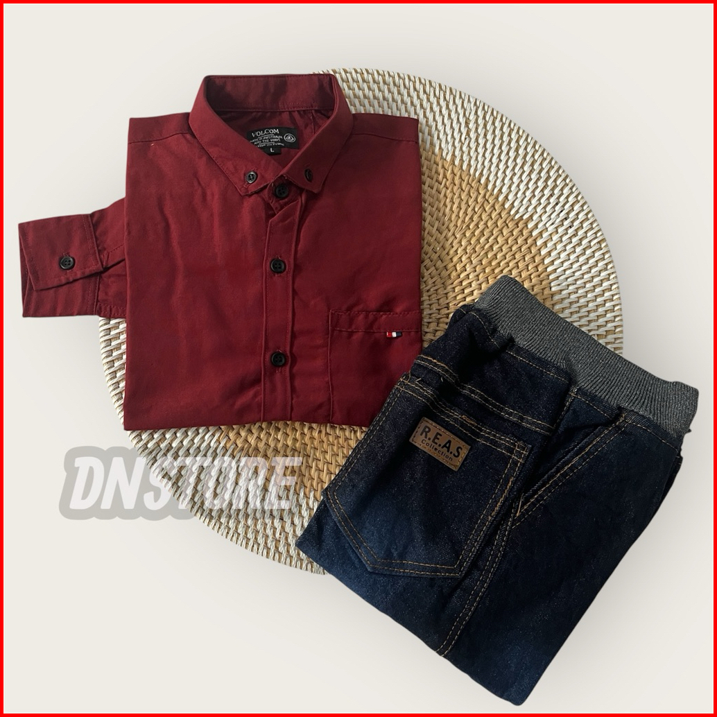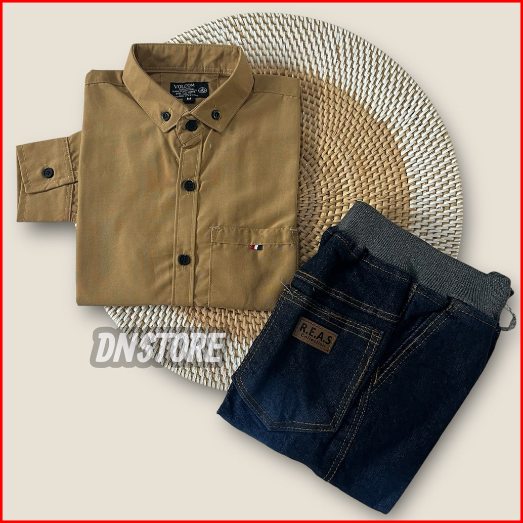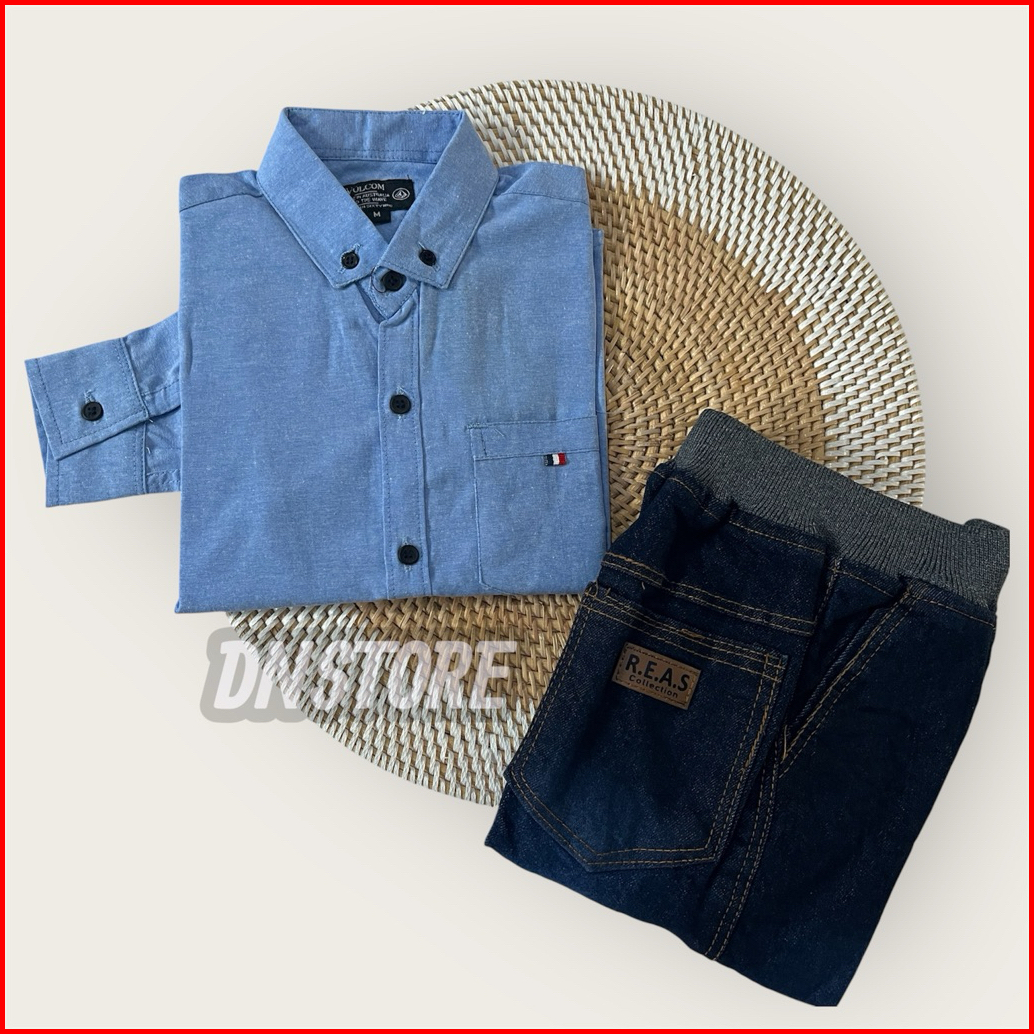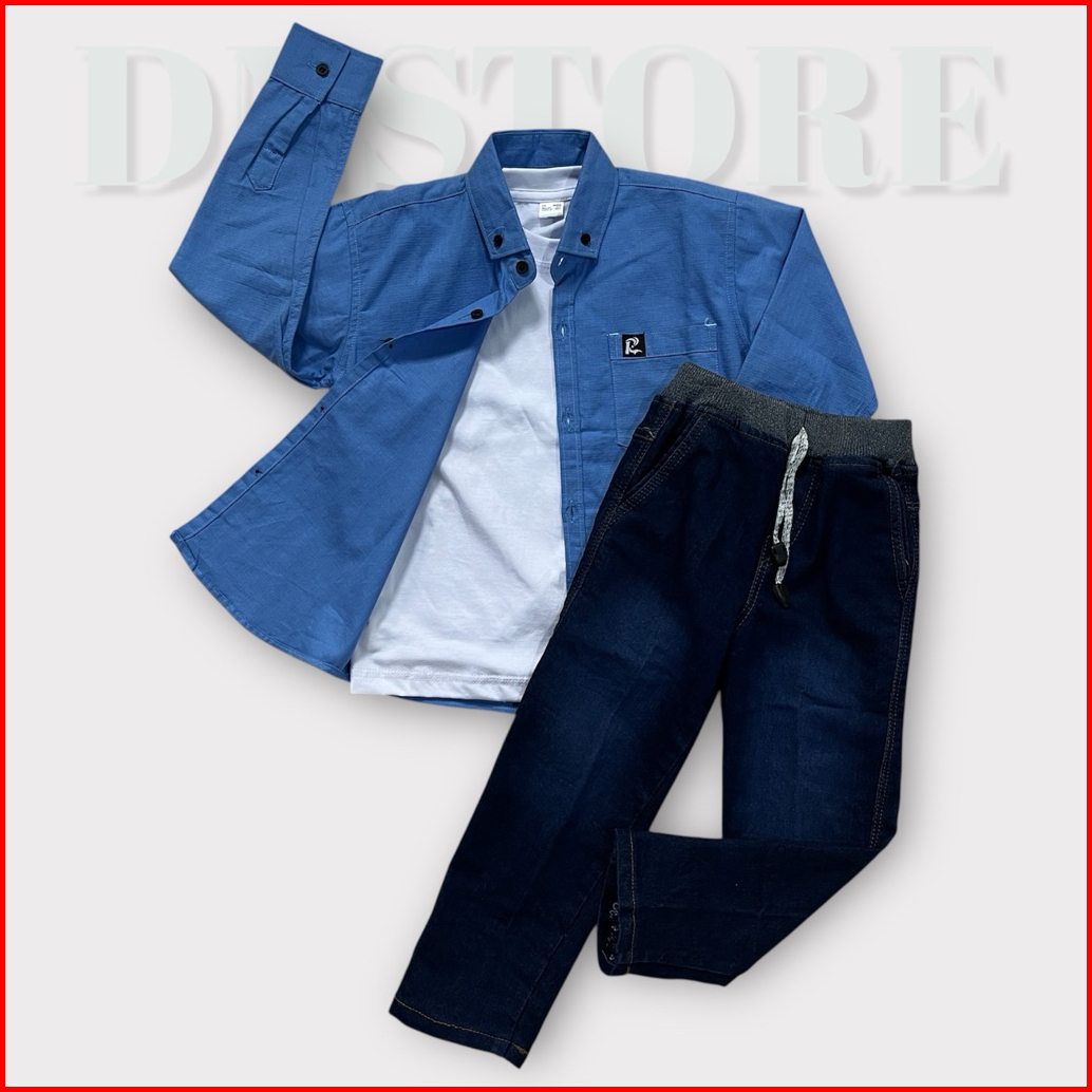 Setelan Kemeja Anak Laki-laki Lengan Panjang Celana Jeans Anak Usia 3-10 Tahun