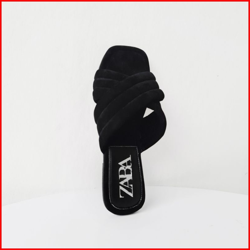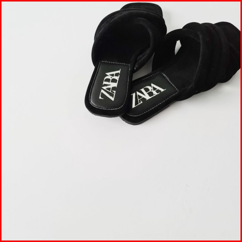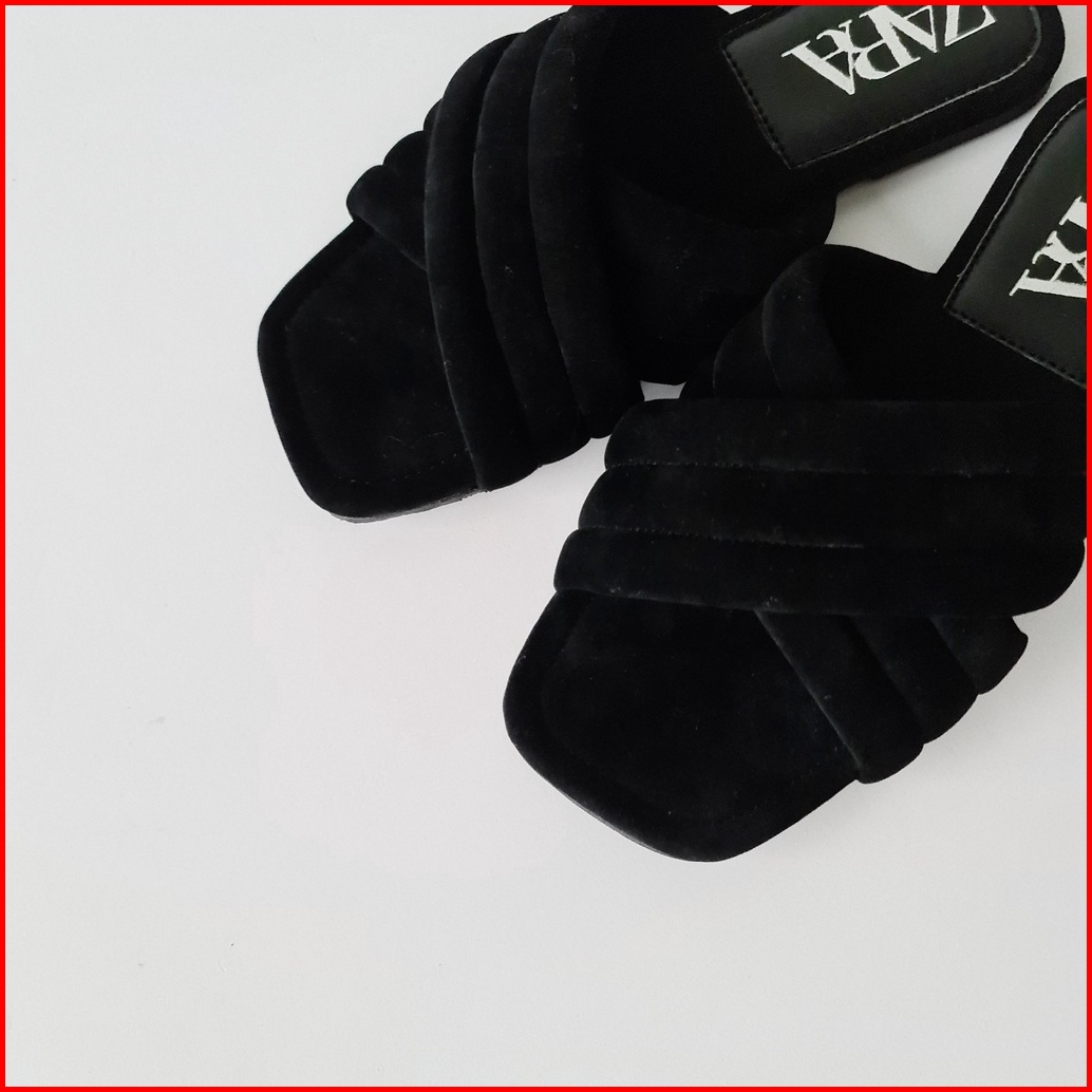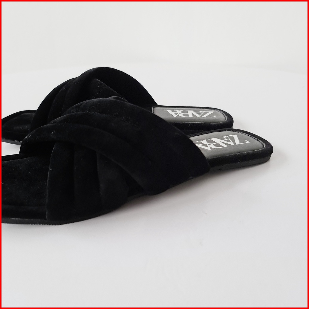 Box Polos Mona Terbaru 2025 Blacksuede Sandal Flat Wanita - Local Handmade Indonesia