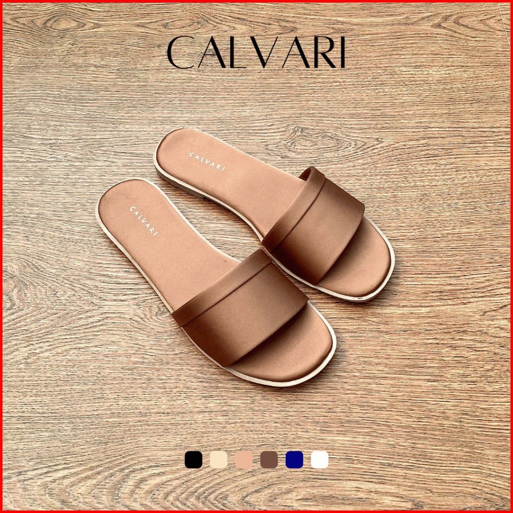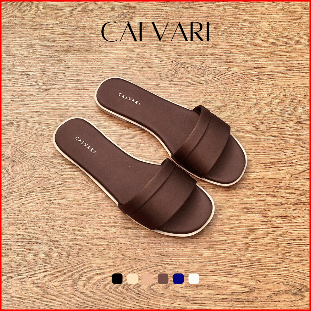 Calvari - Sevi Sandal Wanita Korea Teplek Casual Kekinian Size 36 - 40 Sendal Flat Cewek Kasual