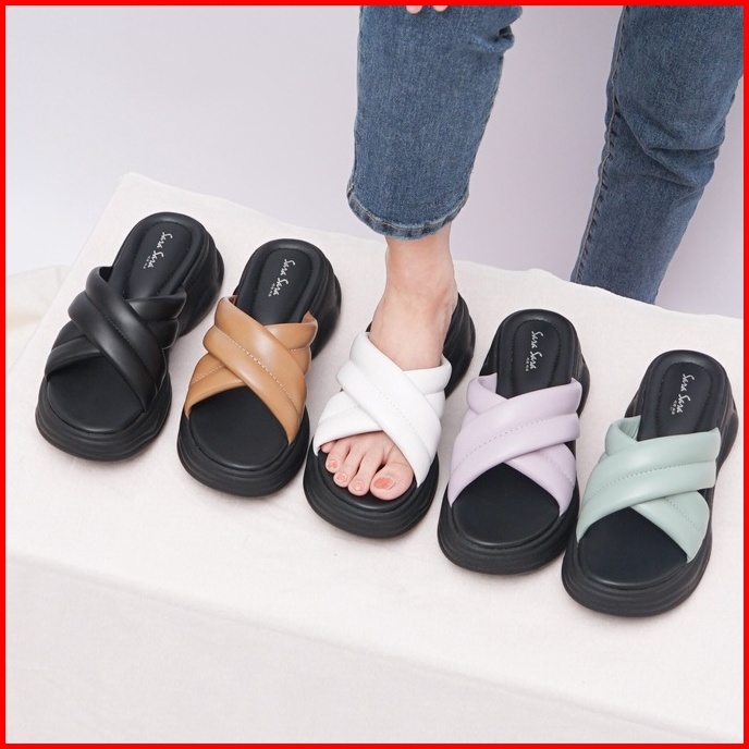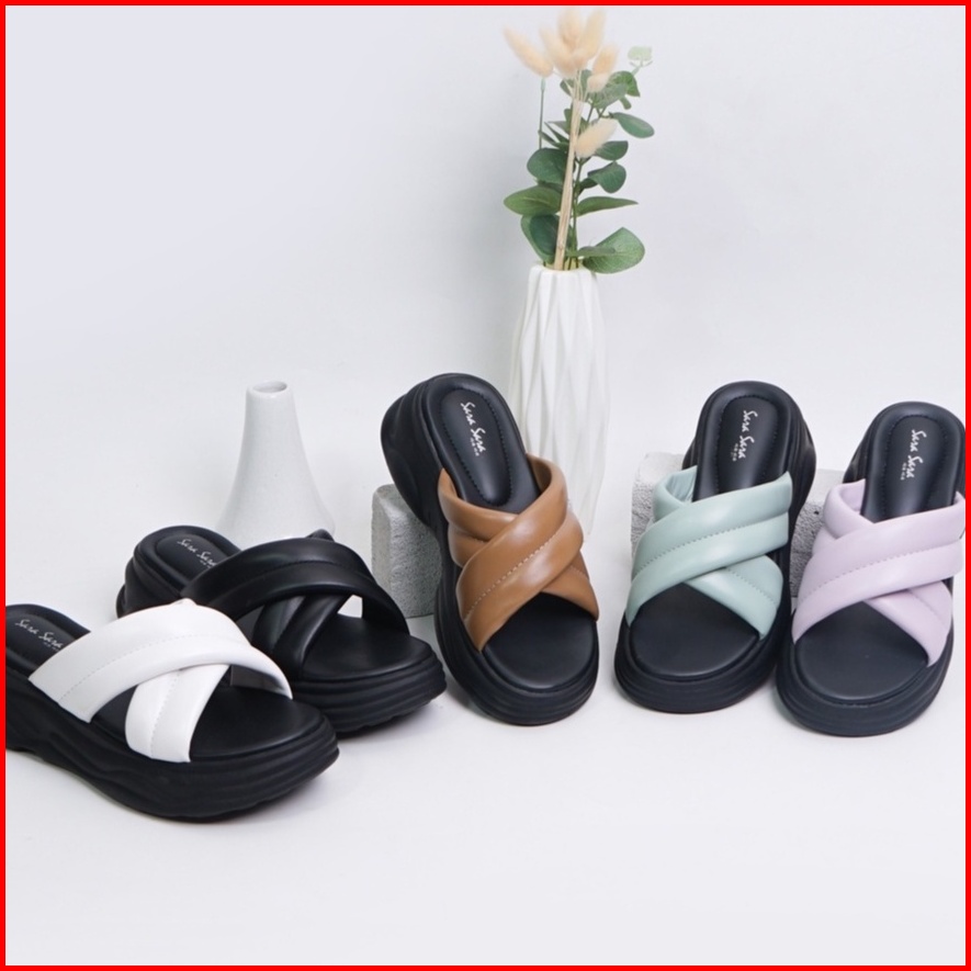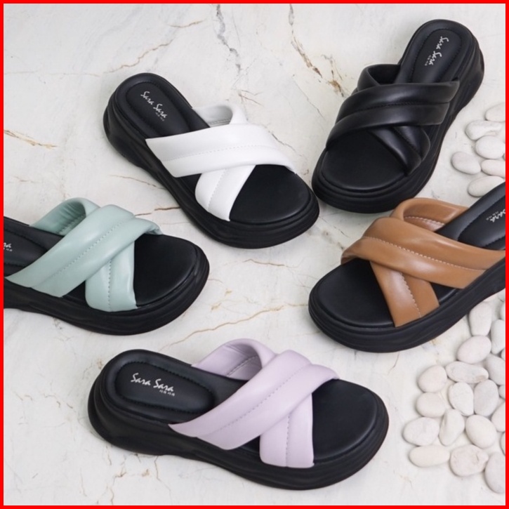 Sara Sara Yuk - Nagita Sandal Wanita Wedges Silang Tinggi 5cm Size 36 - 40 Casual Sendal Cewek Platform 37 38 39 Untuk J