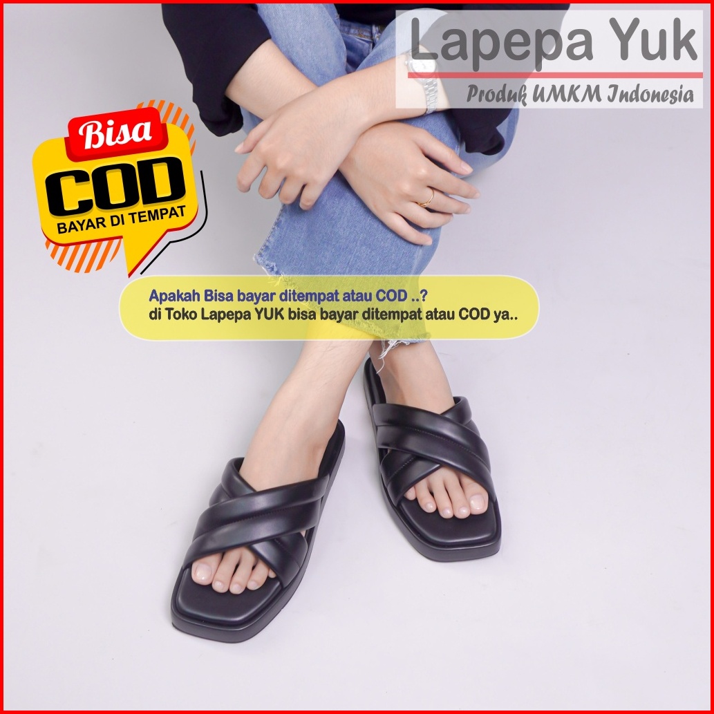 Lapepa Yuk - Sandal Wanita Teplek Bella Sendal Cewek Platform Wedges Kondangan Hak Tinggi 2cm Model Silang 2 Size 36 37