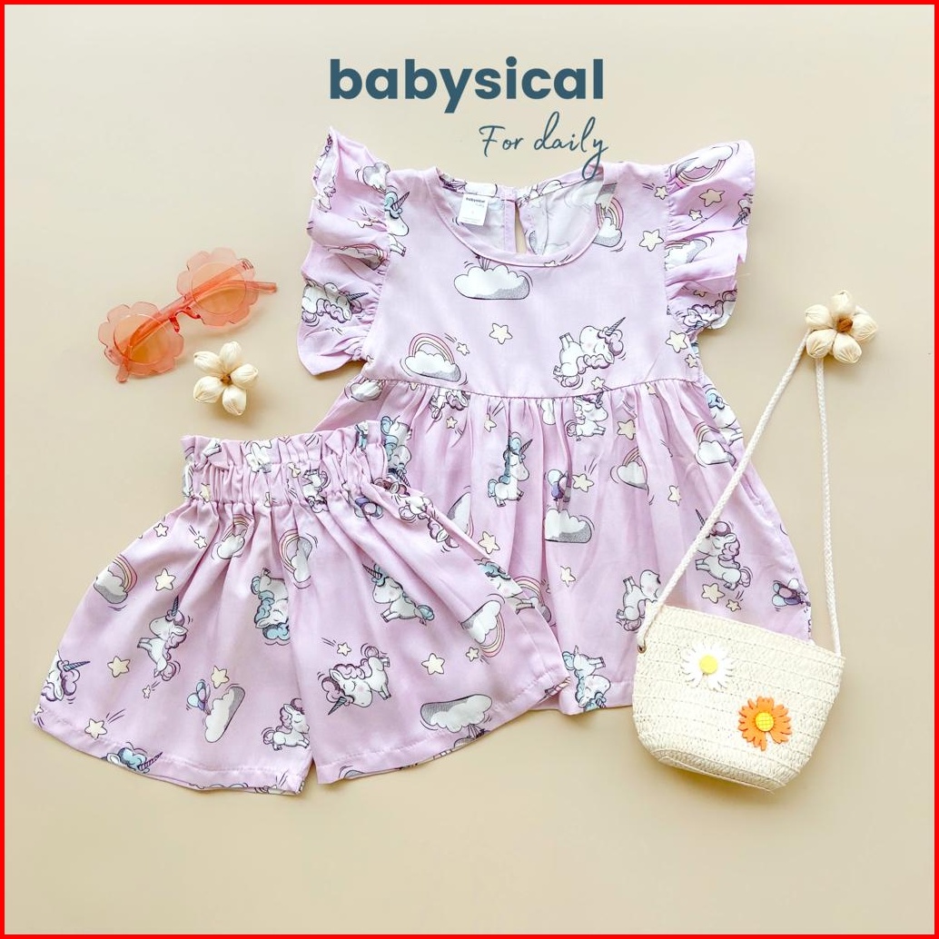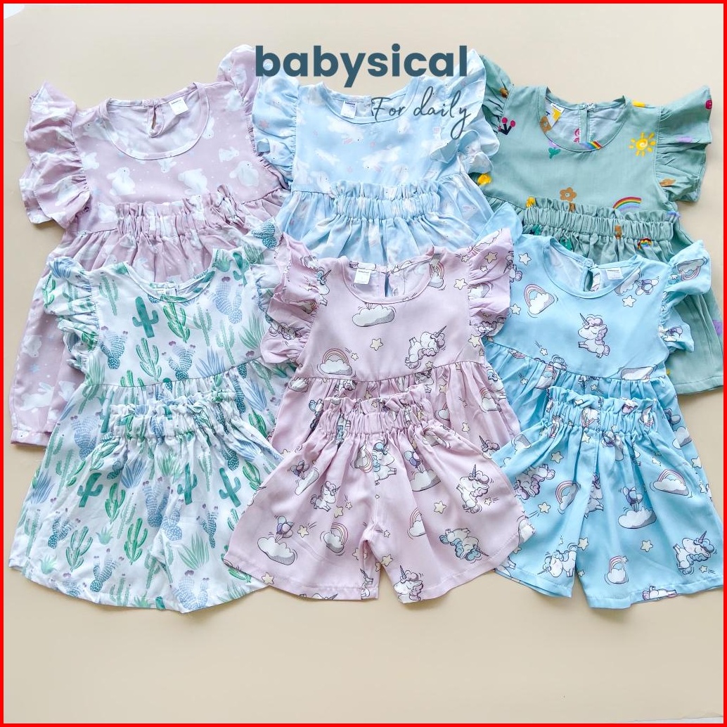 Babysical 1-6 Tahun Bonia Set - Set Baju Anak Perempuan Lucu Rayon Setelan Baju Anak Perempuan Dress Celana Pendek