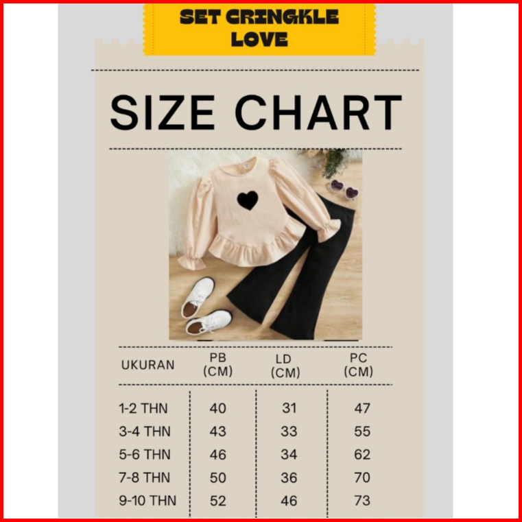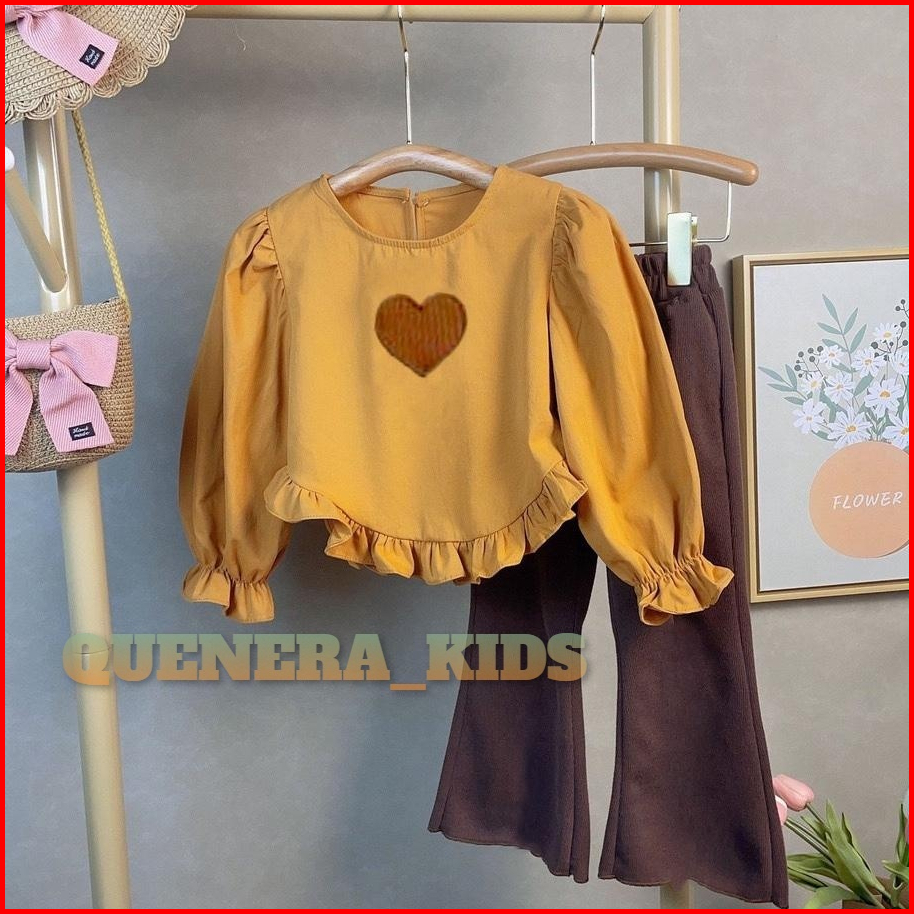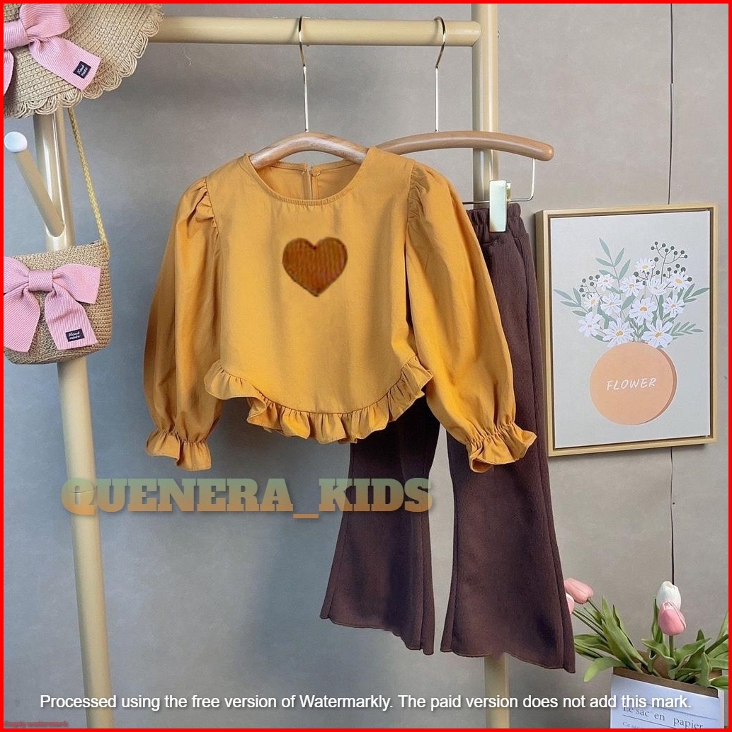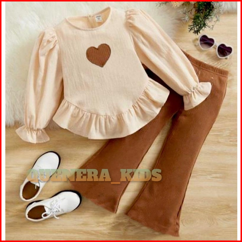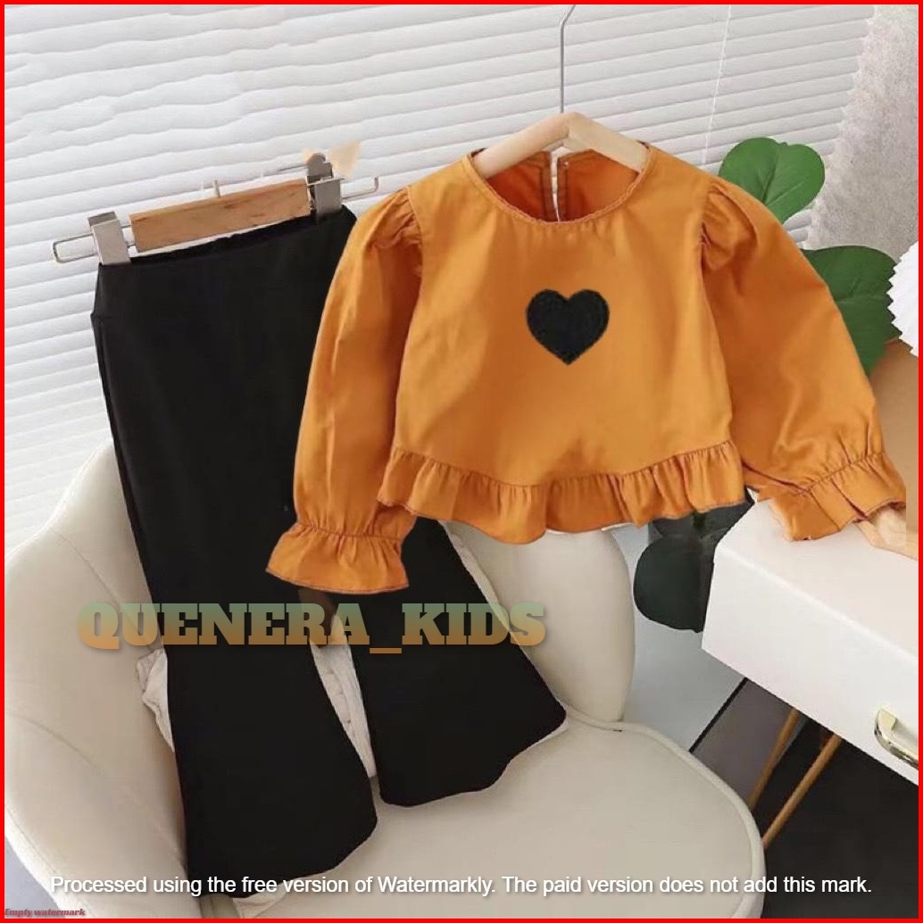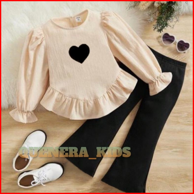 Setelan Anak Perempuan Celana Cutbray Bahan Cringkle Usia 1 Sampai 10 Tahun Dengan Motif Love
