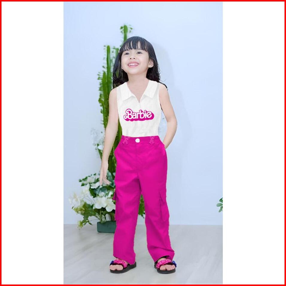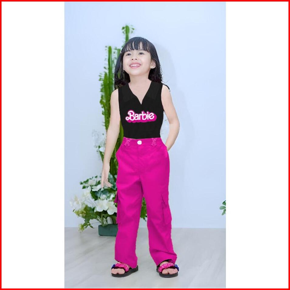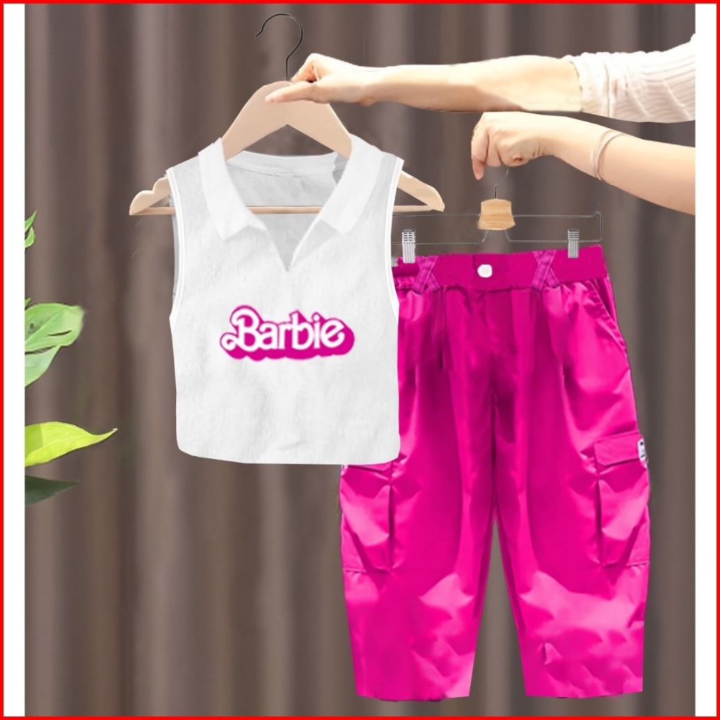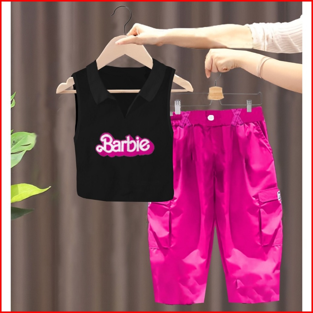 Setelan Anak Perempuan 1-5 Tahun Lekbong Barbie Oneset Anak Kaos Celana Panjang Baju Anak Bangsa