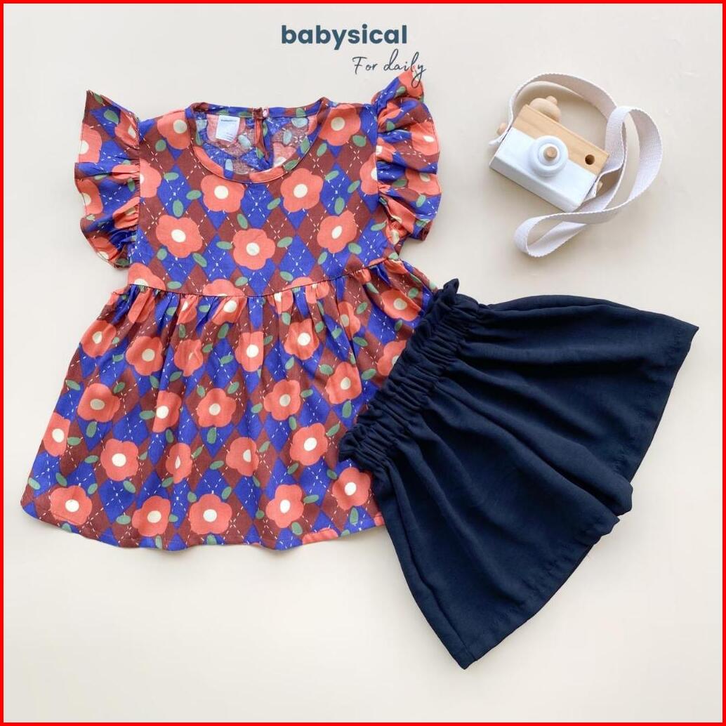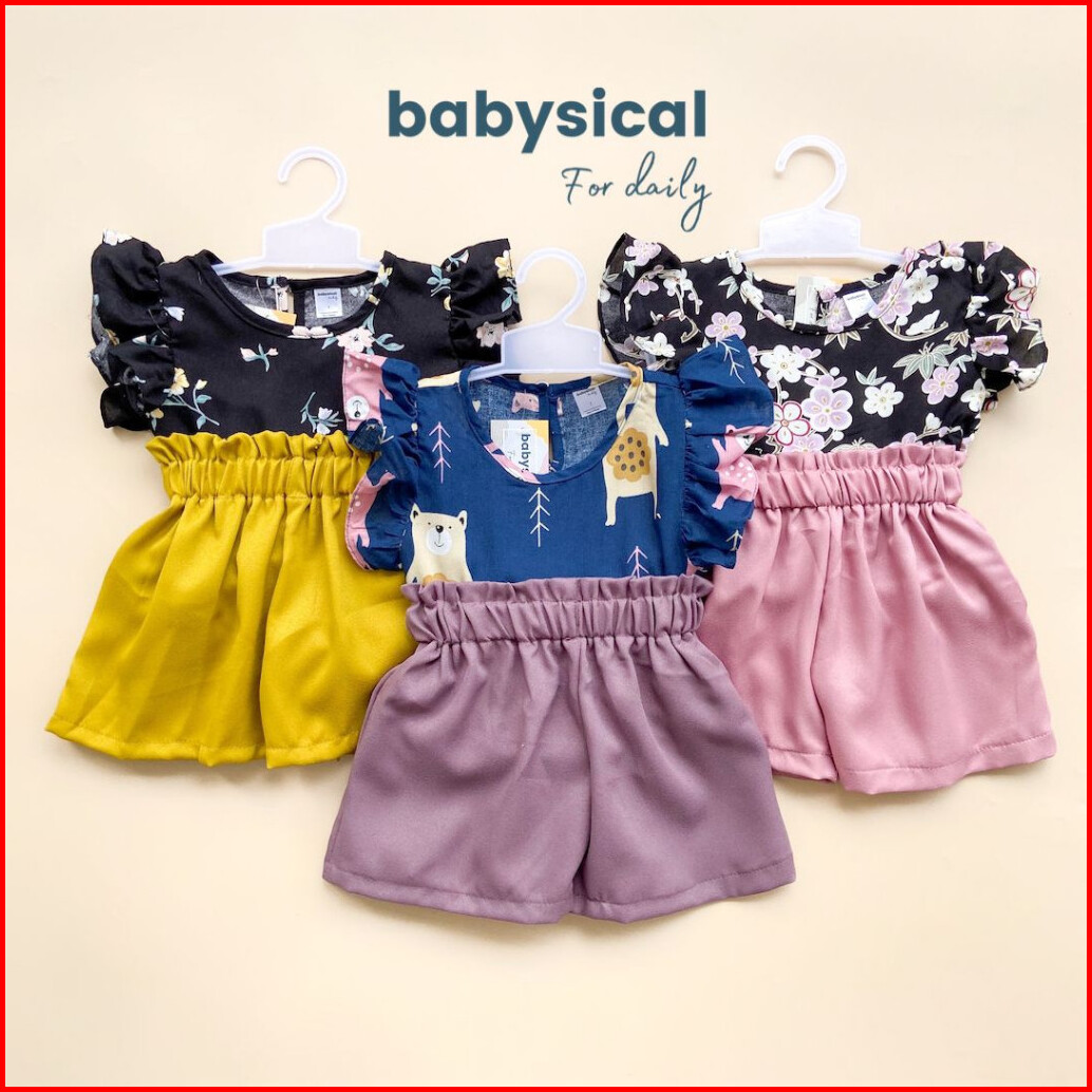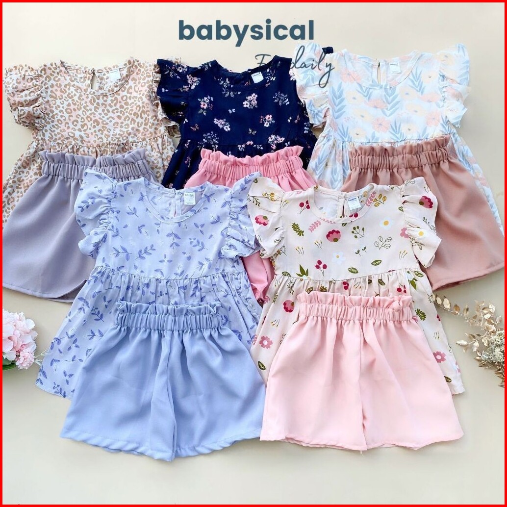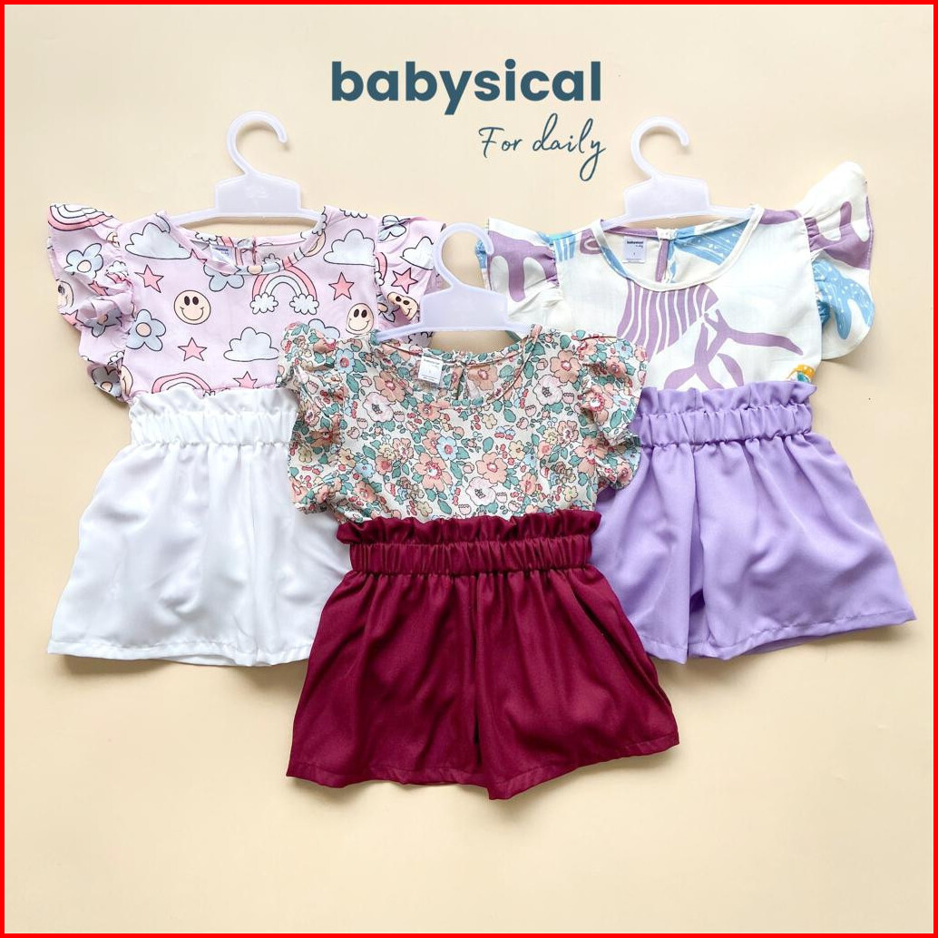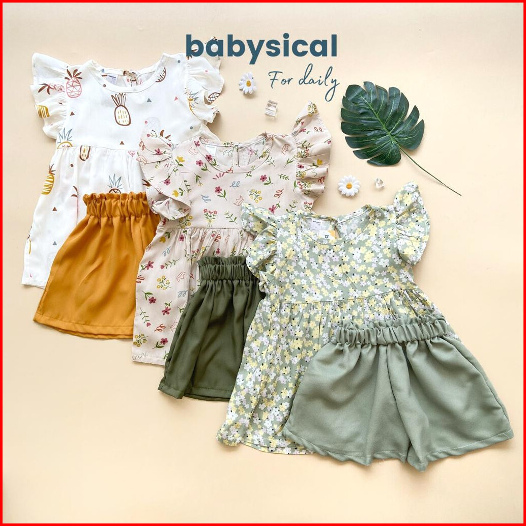 Babysical 1-6 Tahun Hyura Set - Set Baju Anak Perempuan Lucu Rayon Setelan Baju Anak Perempuan Dress Celana Pendek
