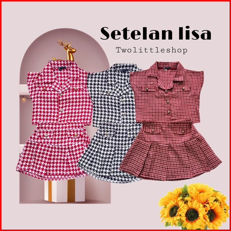 Lisa Set - Setelan Pakaian Anak Perempuan Baju Blouse Cotton Rok Korea