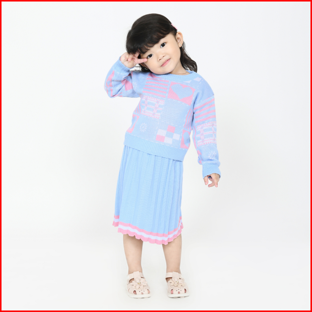 Promo 9.9 -tamina Setelan Baju Anak Perempuan Korean Bahan Rajut Premium - One Set Kids Umur 1-5 Tahun