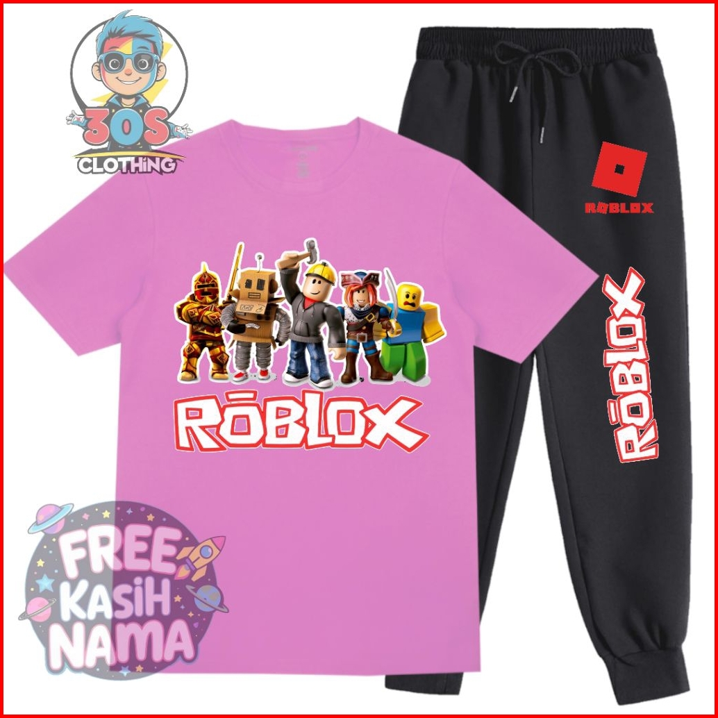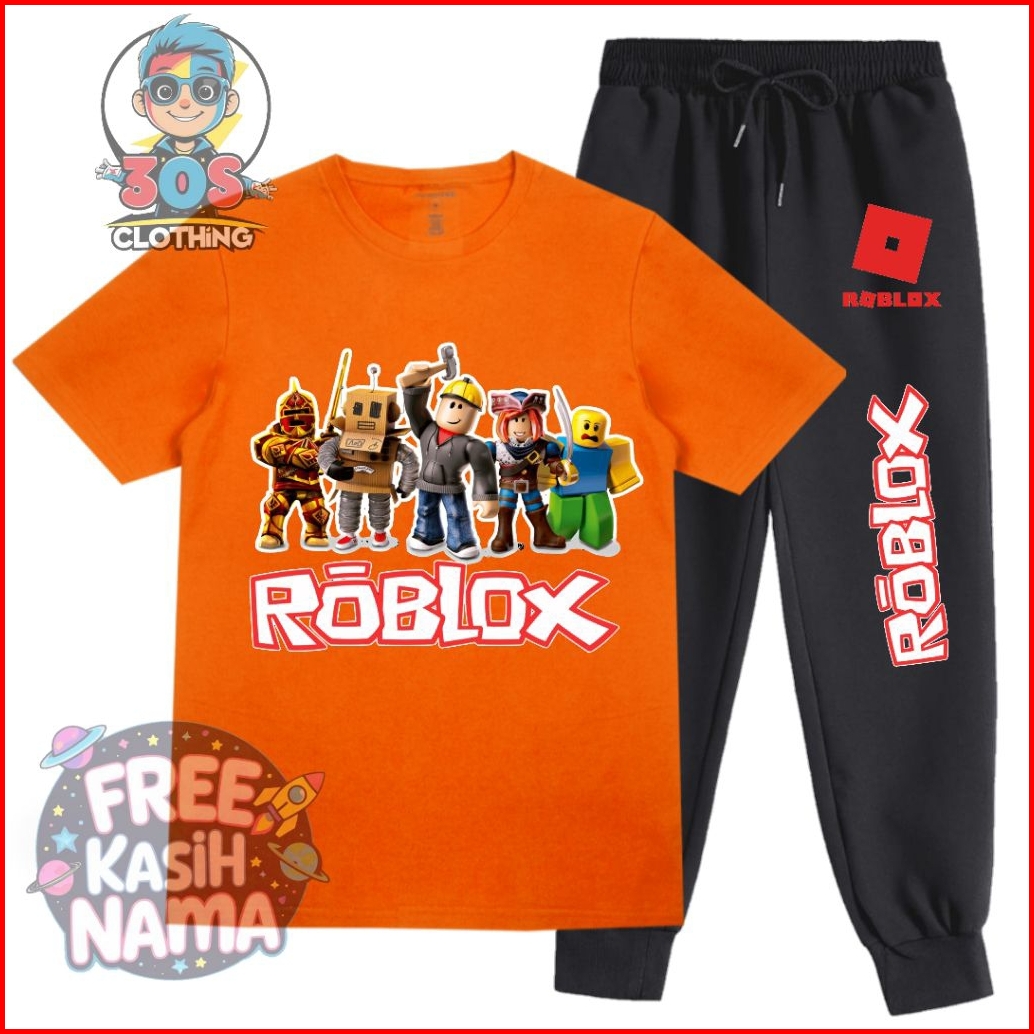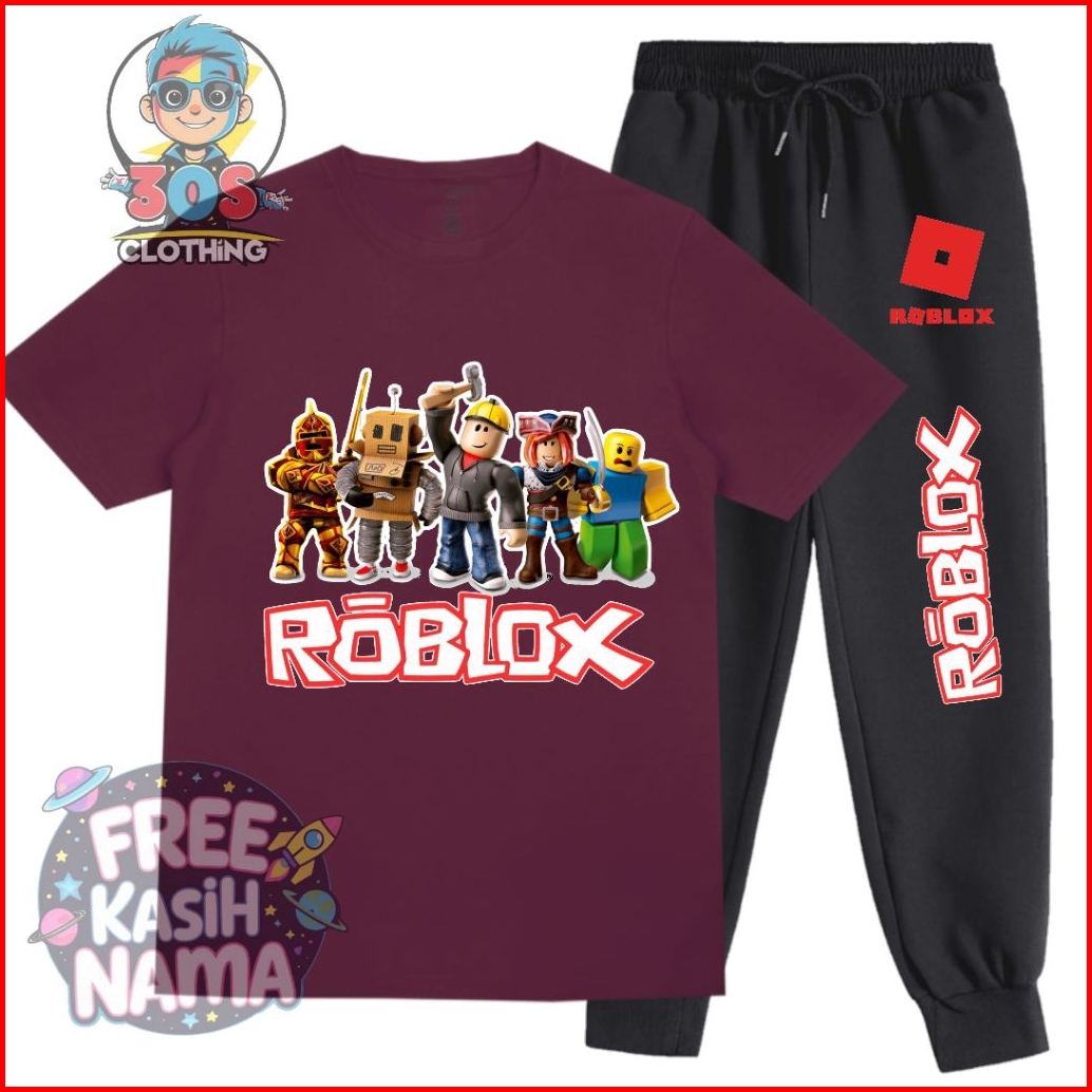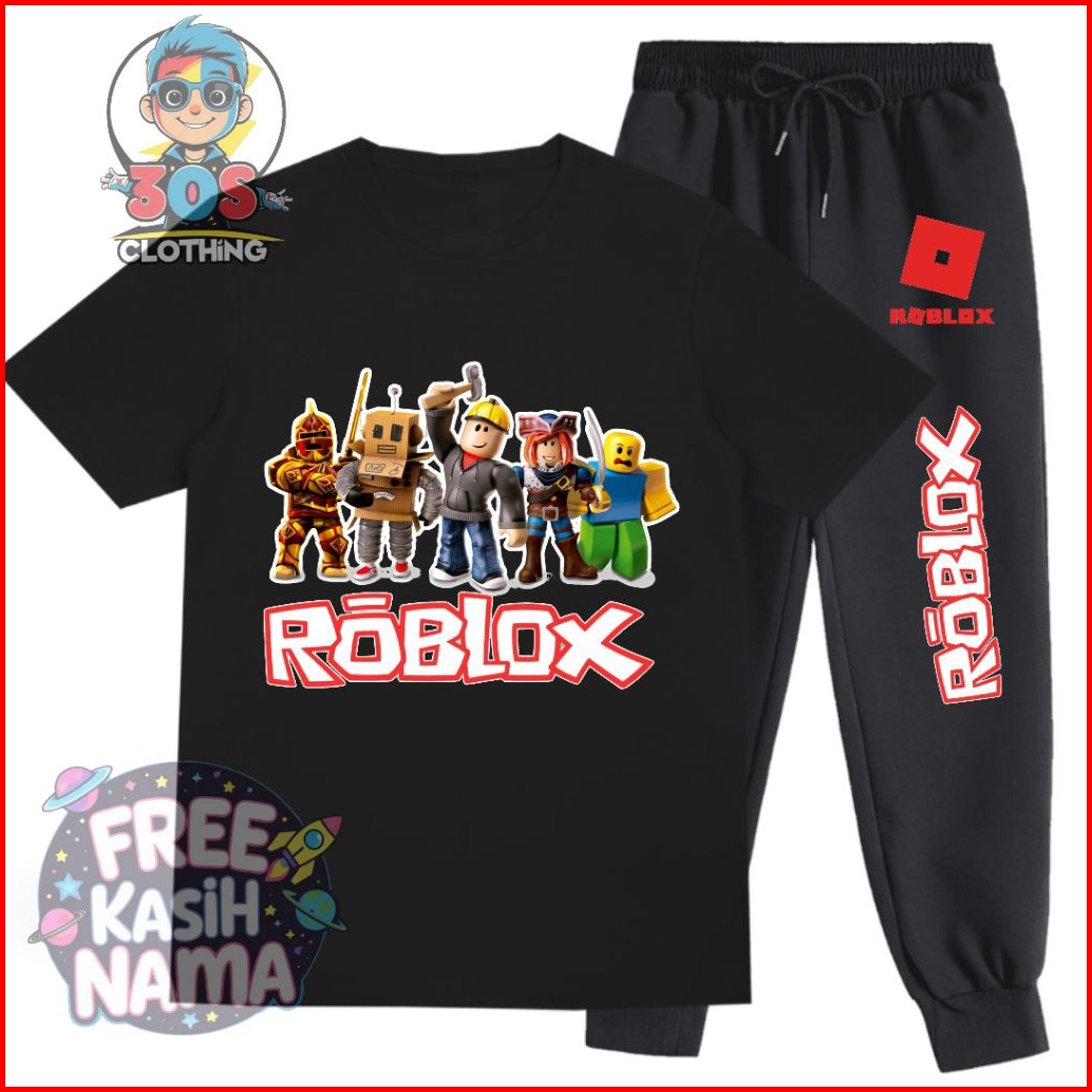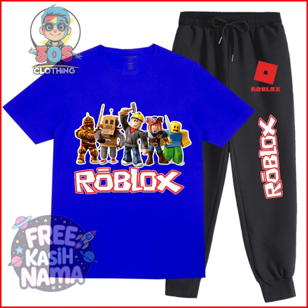 Setelan Kaos Anak Laki Perempuan Dan Celana Jogger Motif Roblox Dan Bisa Kasih Nama