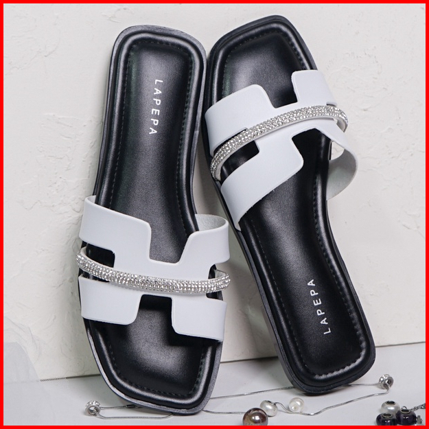 Lapepa Yuk - Tiara Sandal Wanita Teplek Korea Casual Size 36 - 40 Sendal Slop Blink Bling Empuk Flat Cewek Kasual Rumaha