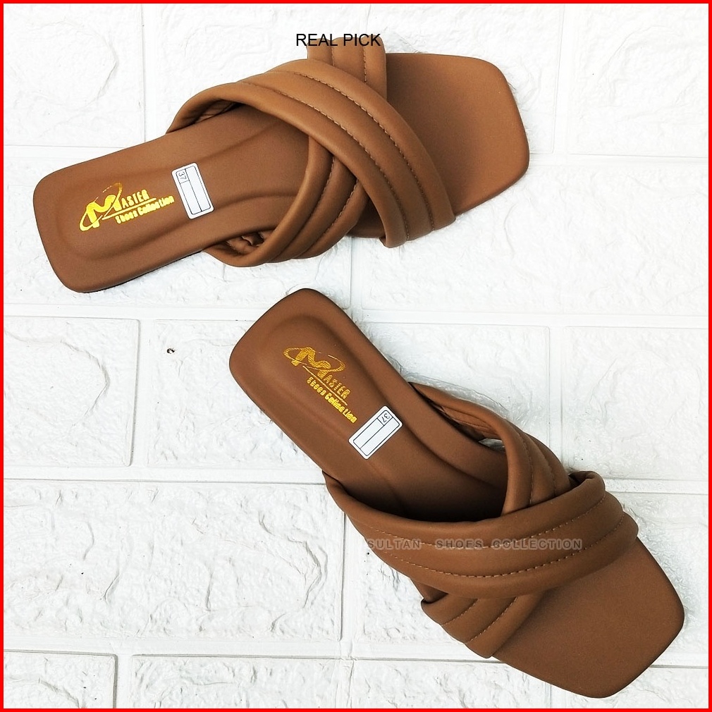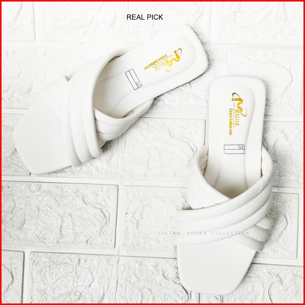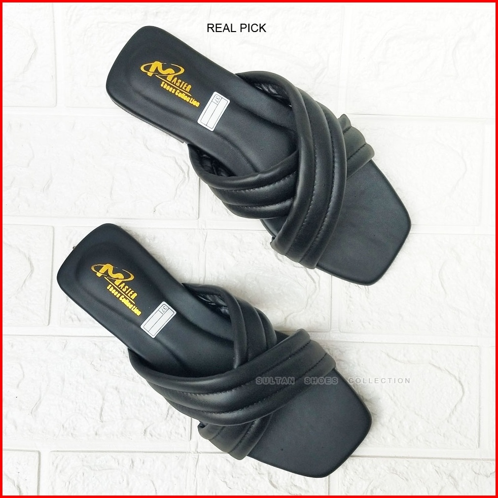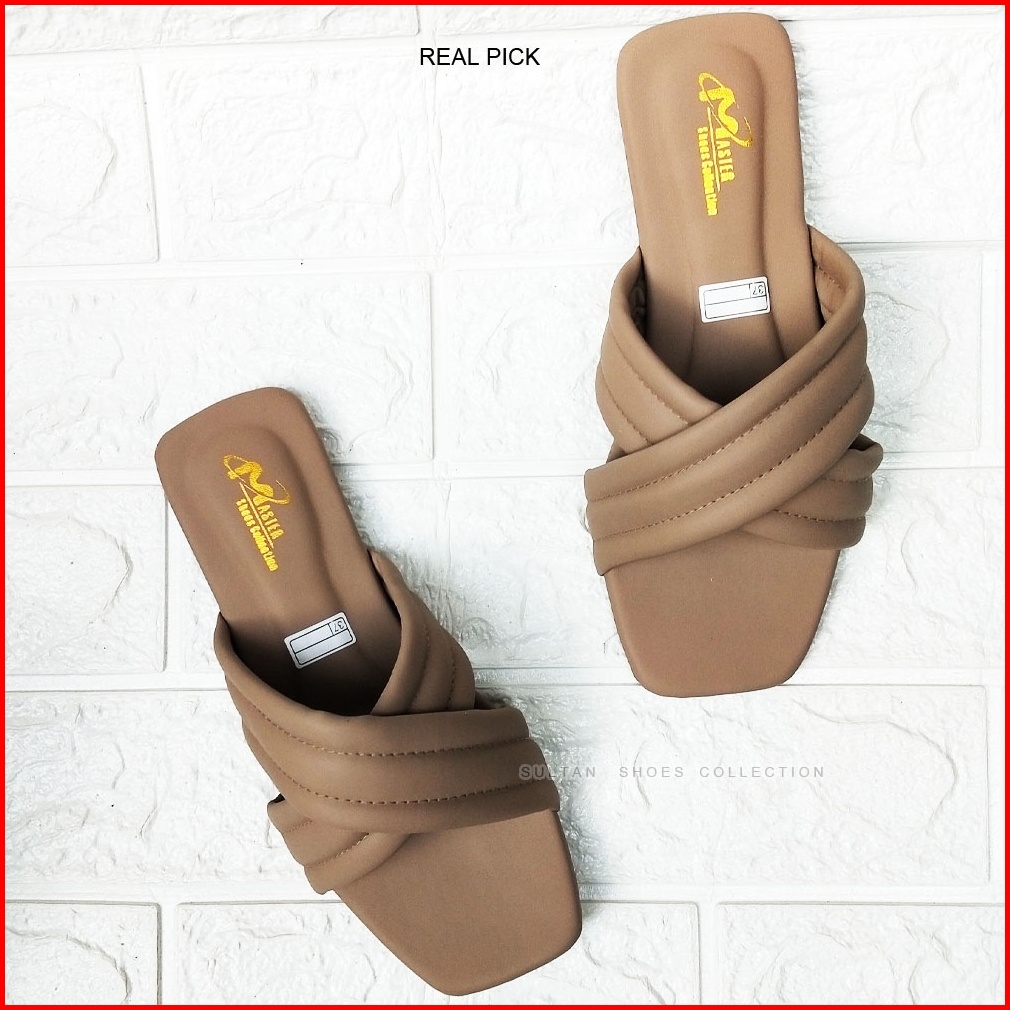 Sendal Slop Slip On Wanita Flat Teplek Silang Busa - Sandal Selop Santai Wanita Strap Puffy Kekinian Flat Teplek Silang