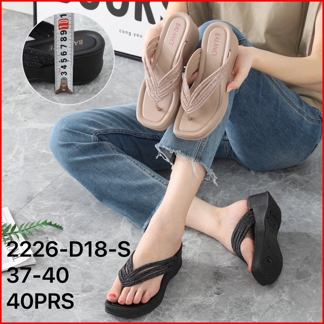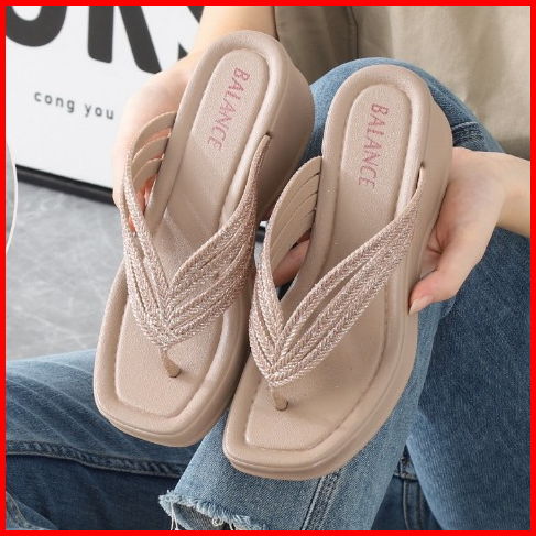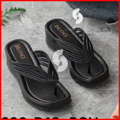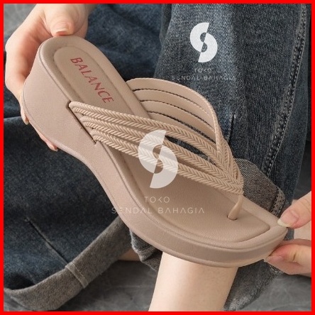 Sandal Jepit Wedges Wanita Tinggi 5cm Motif Pine Ulir Bahan Karet Jelly Empuk Cewek Korea Balance 2226-d18