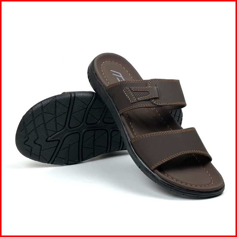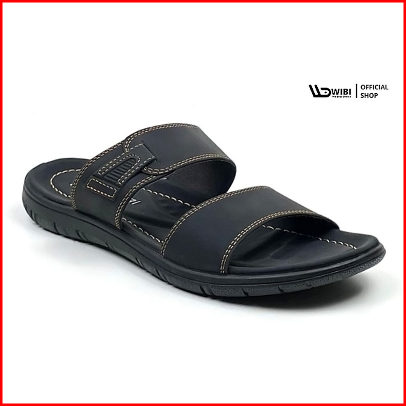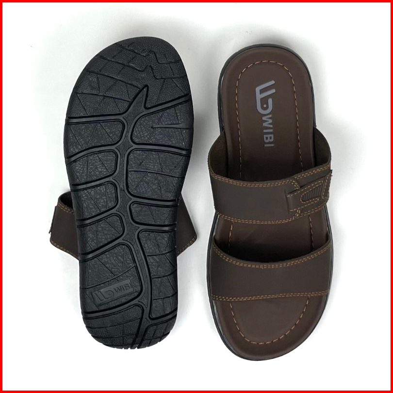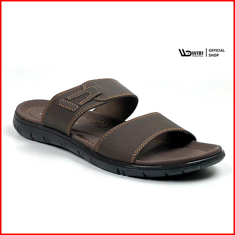 Wibi Elegant Low S21-01 Sandal Pria Dewasa Slop Kulit Ban 2 Cokelat Tua Size 39 - 43