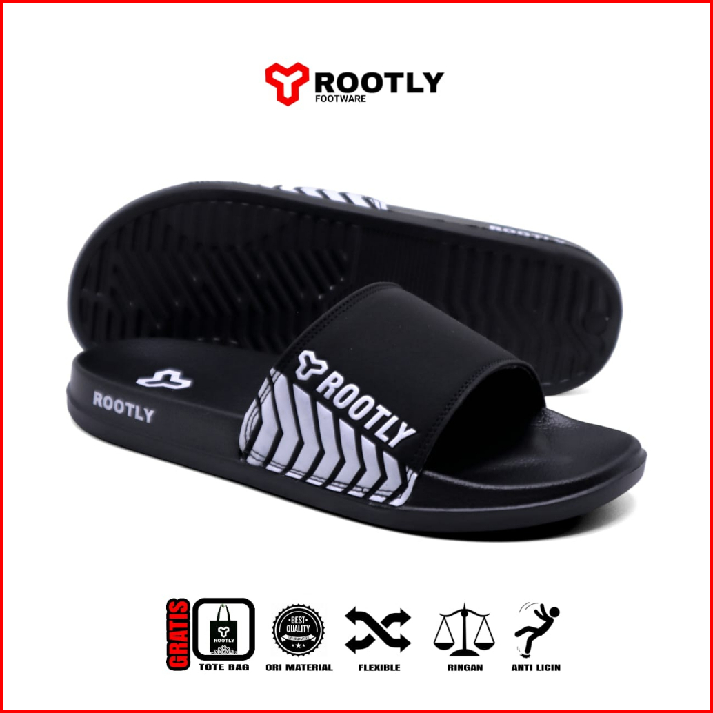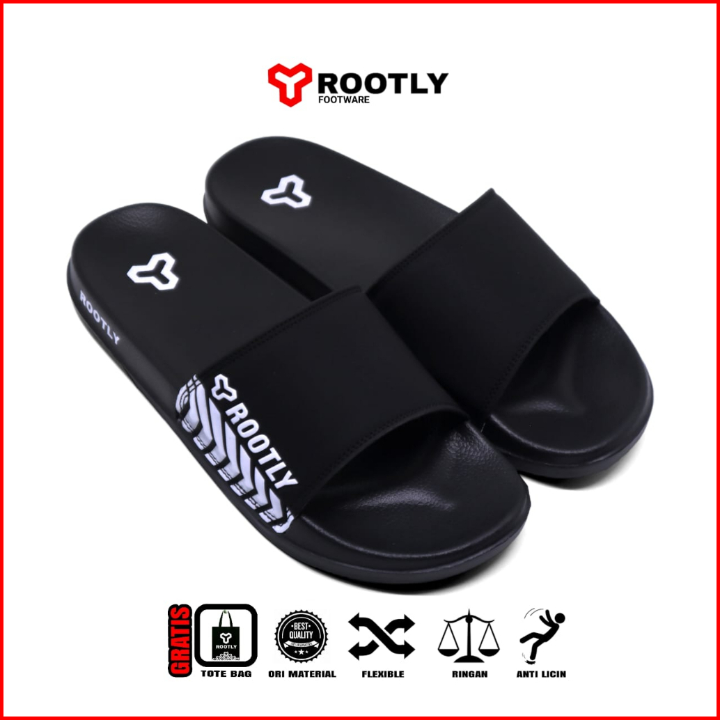 Rootly - Sandal Slide Pria Simple Trendy Black White