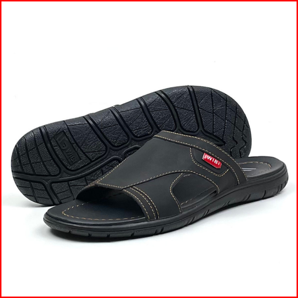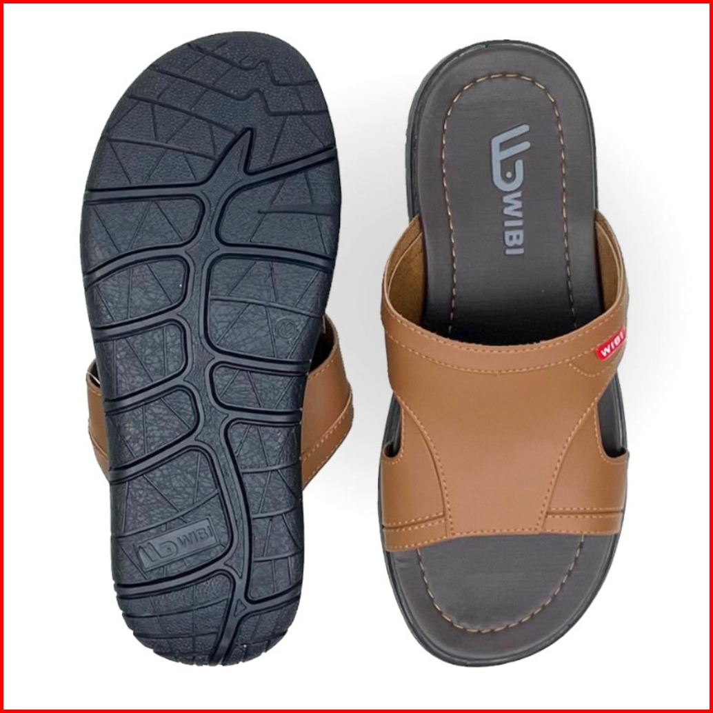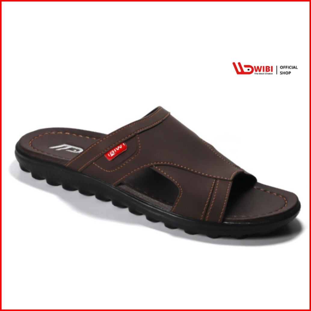 Wibi Smooth Logo S12-01 Sandal Kulit Pria Dewasa Slop Cokelat Tua 39 Sd 43