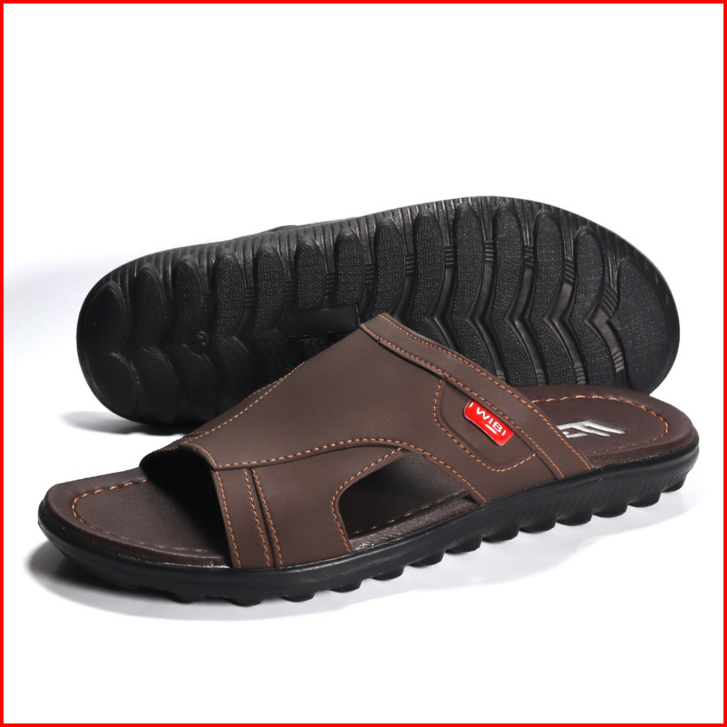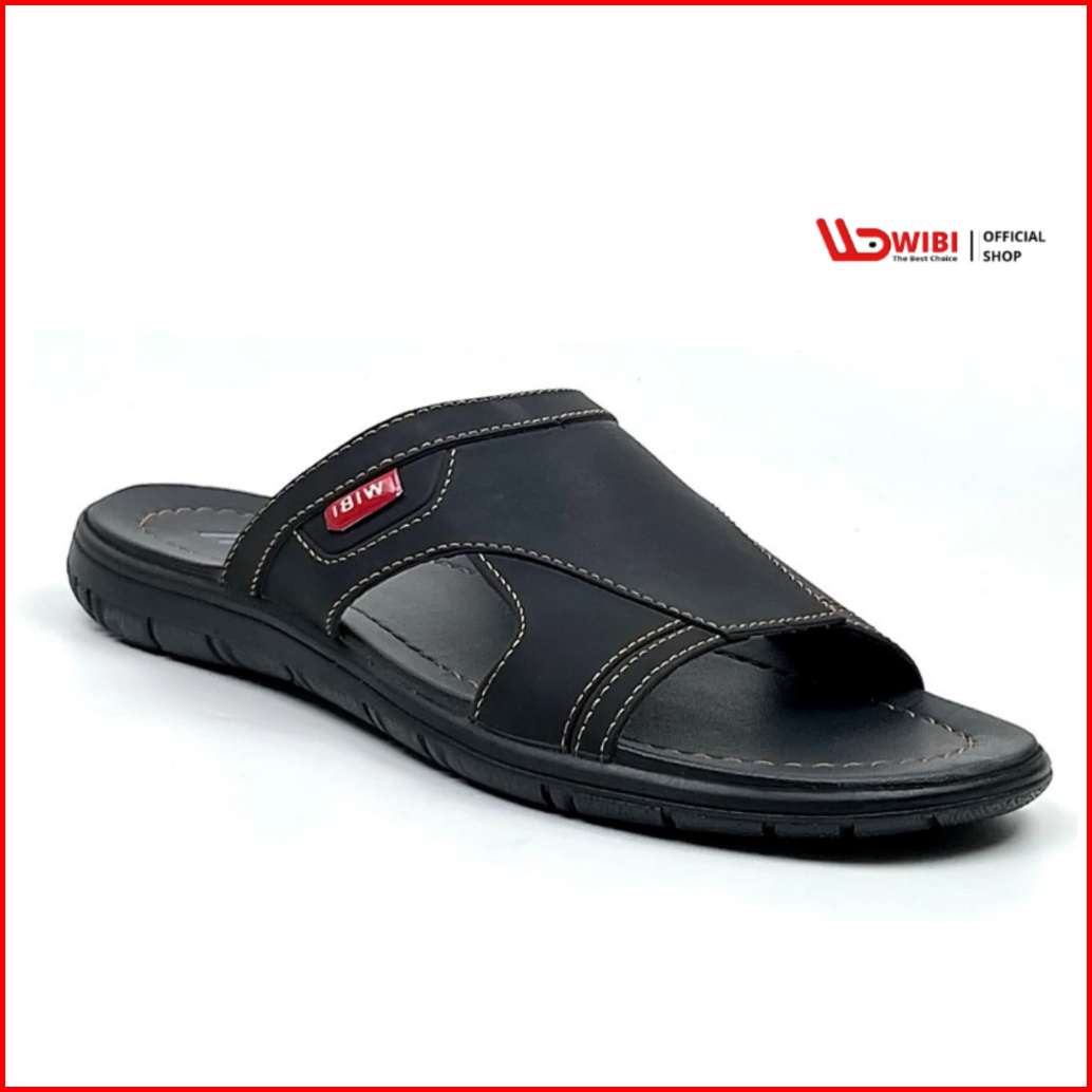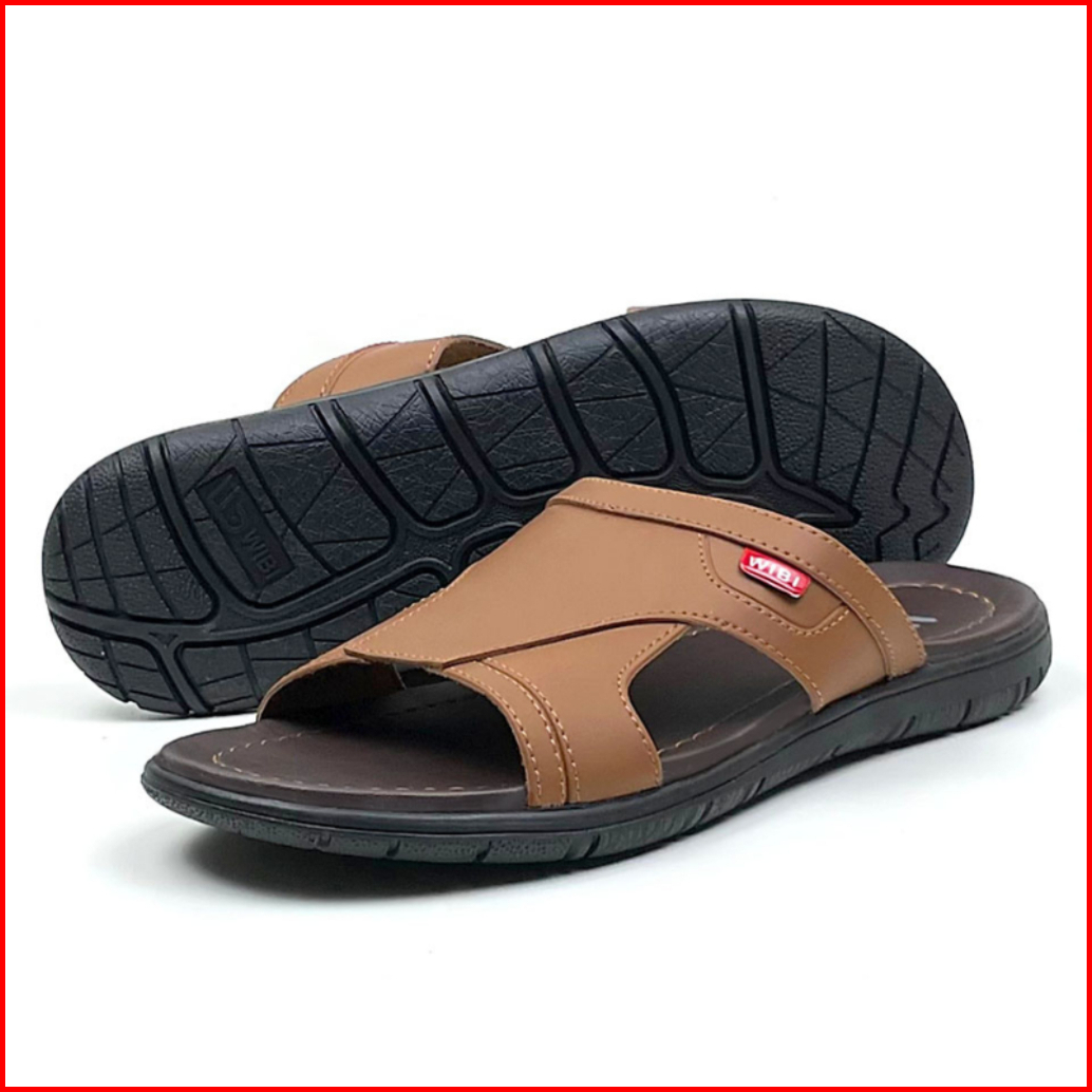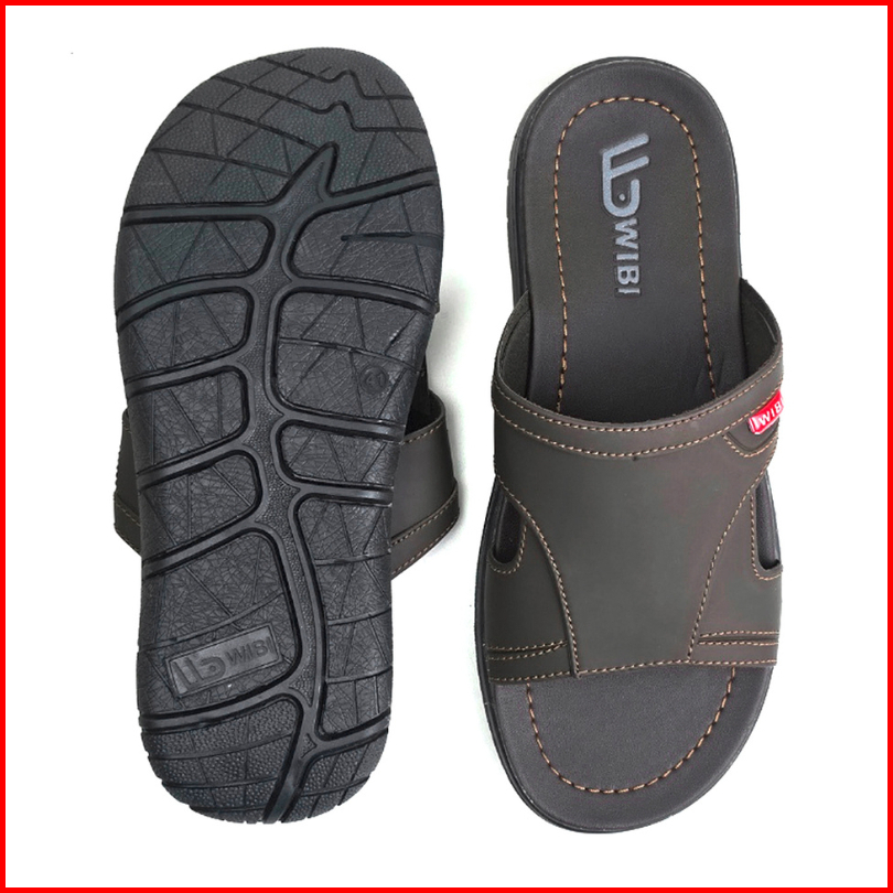 Wibi Smooth Logo S12-01 Sandal Kulit Pria Dewasa Slop Cokelat Tua 39 Sd 43